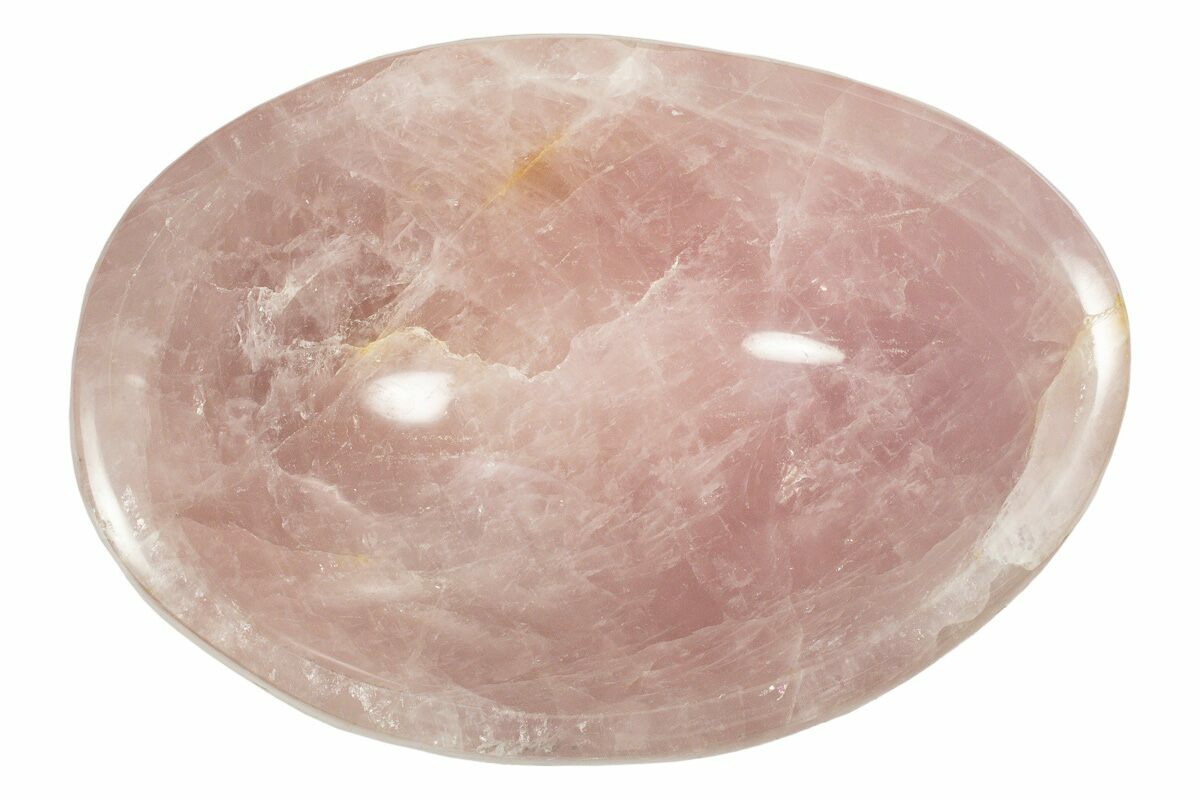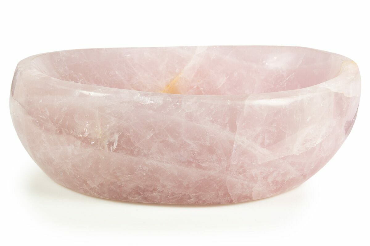 This is a gorgeous, 9.6" wide, polished rose quartz bowl. It has been hand carved/polished out of a solid piece of rose quartz crystal.