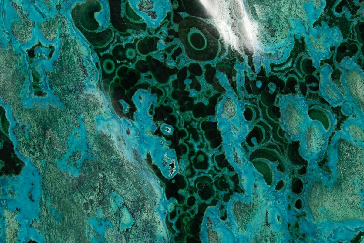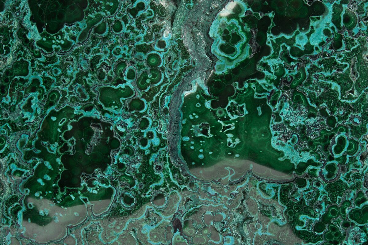 Malachite results from the weathering of other copper ores, and is very often found associated with other copper-based minerals such as azurite and chrysocolla. It can be found in copper deposits around the world, but the Democratic Republic of the Congo is the primary source for polished malachite and mineral specimens.