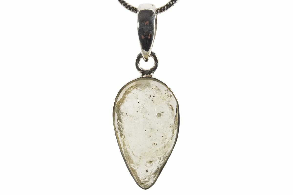This is a 2.6 gram piece of Libyan desert glass, a type of meteorite impactite found along the Egyptian and Libyan borders. The impactite cabochon was inlaid in a 925 sterling silver pendant setting that allows you to take your favorite impactite on the go.