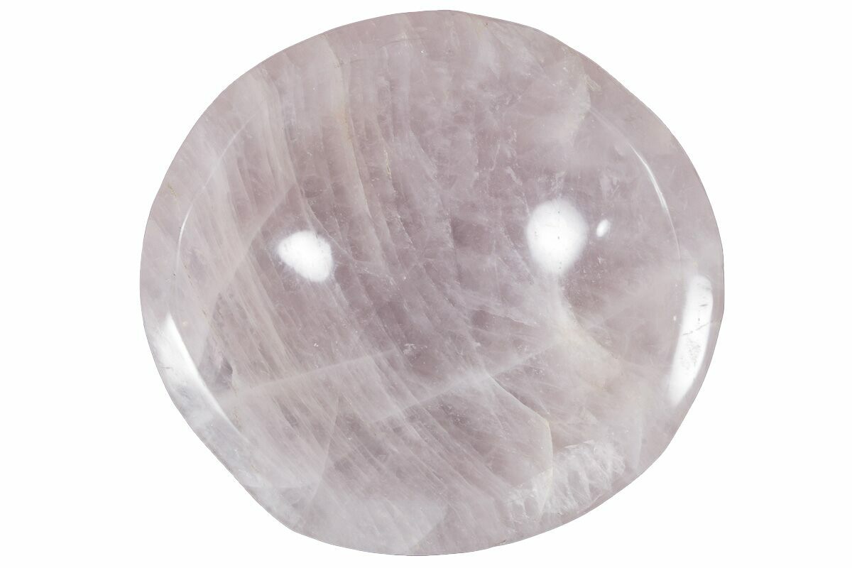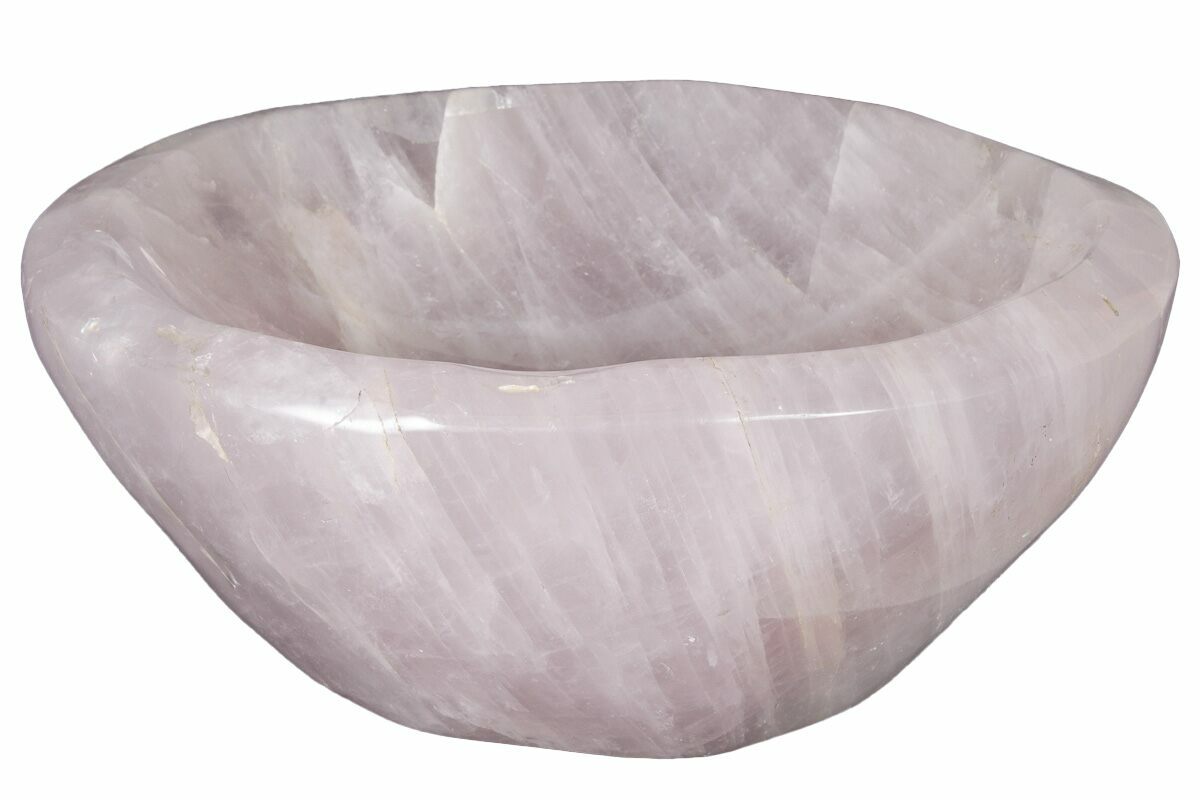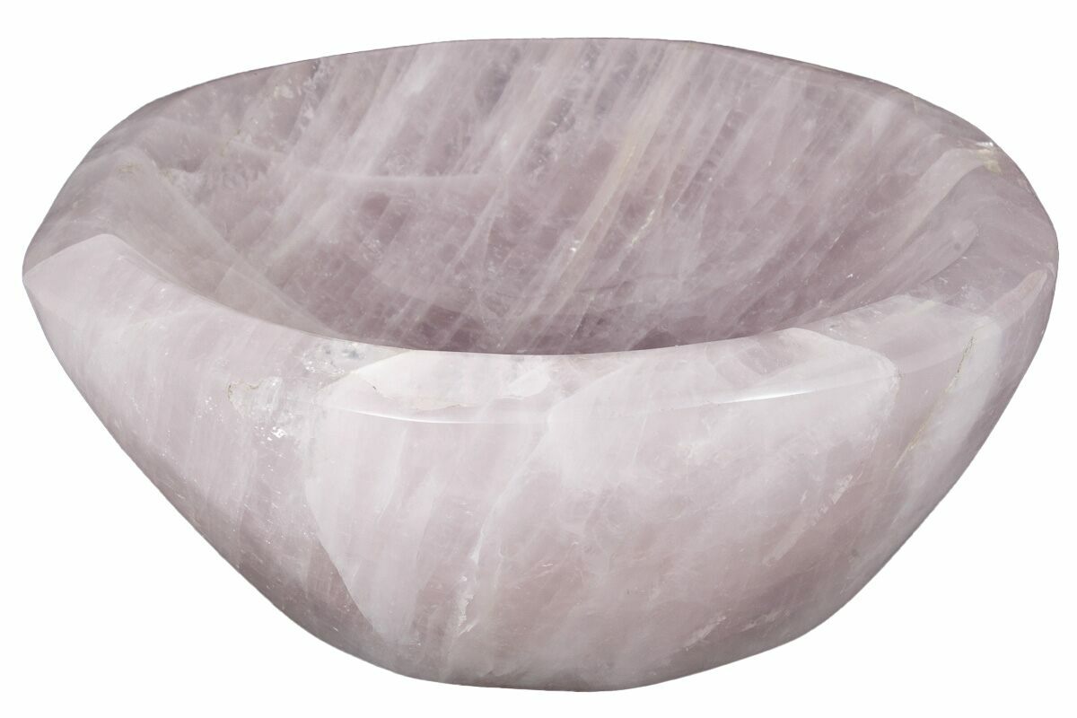 This is a gorgeous, 9" wide, polished rose quartz bowl. It has been hand carved/polished out of a solid piece of rose quartz mined in Madagascar.