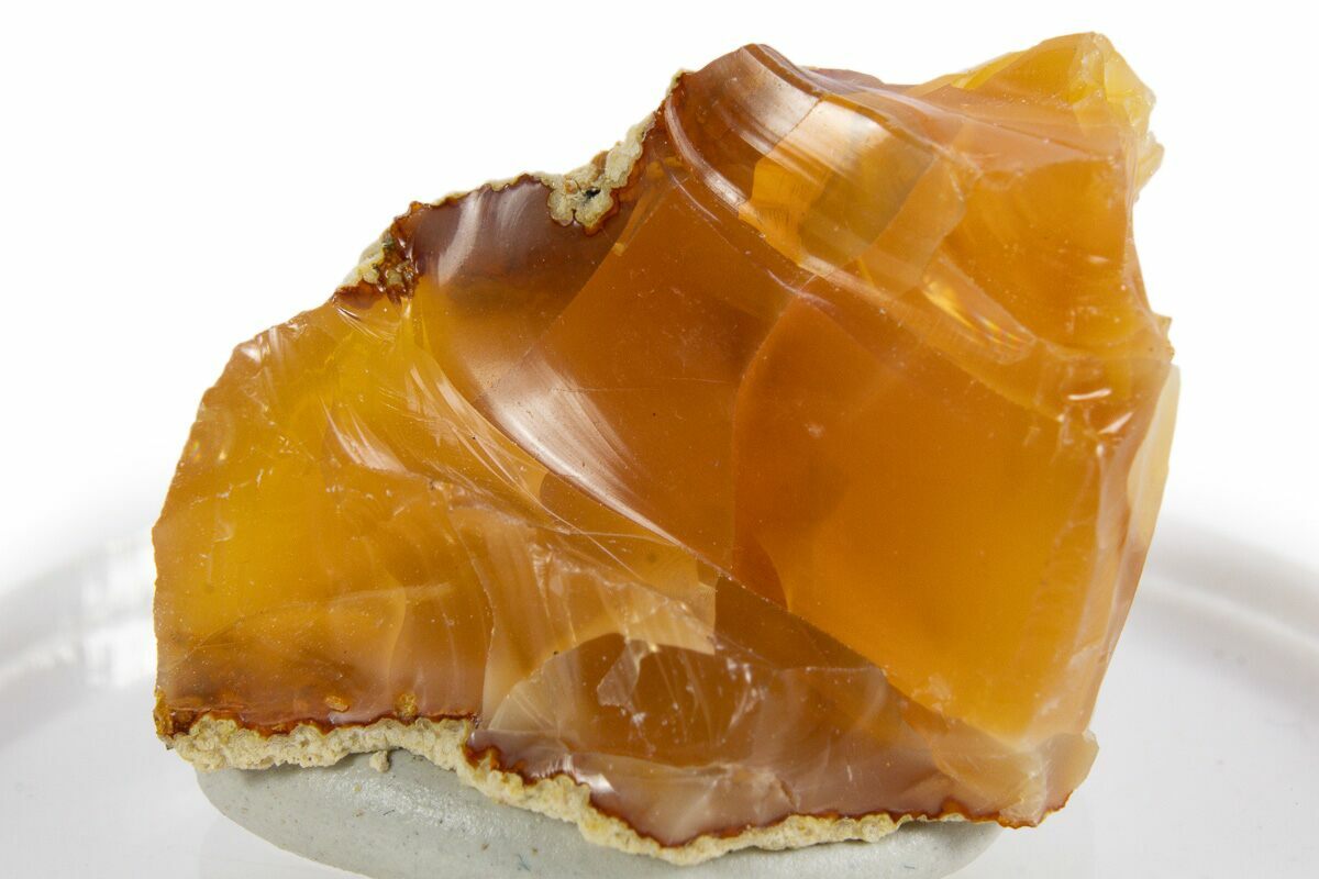 This is a beautiful .95" section of fire opal, collected in the remote mountains of Eastern Oregon. It is known for its vivid orange and yellow hues, obtaining its fiery colors from trace amounts of iron. Unlike many opals, it can be transparent, glowing brightly when lit from behind.