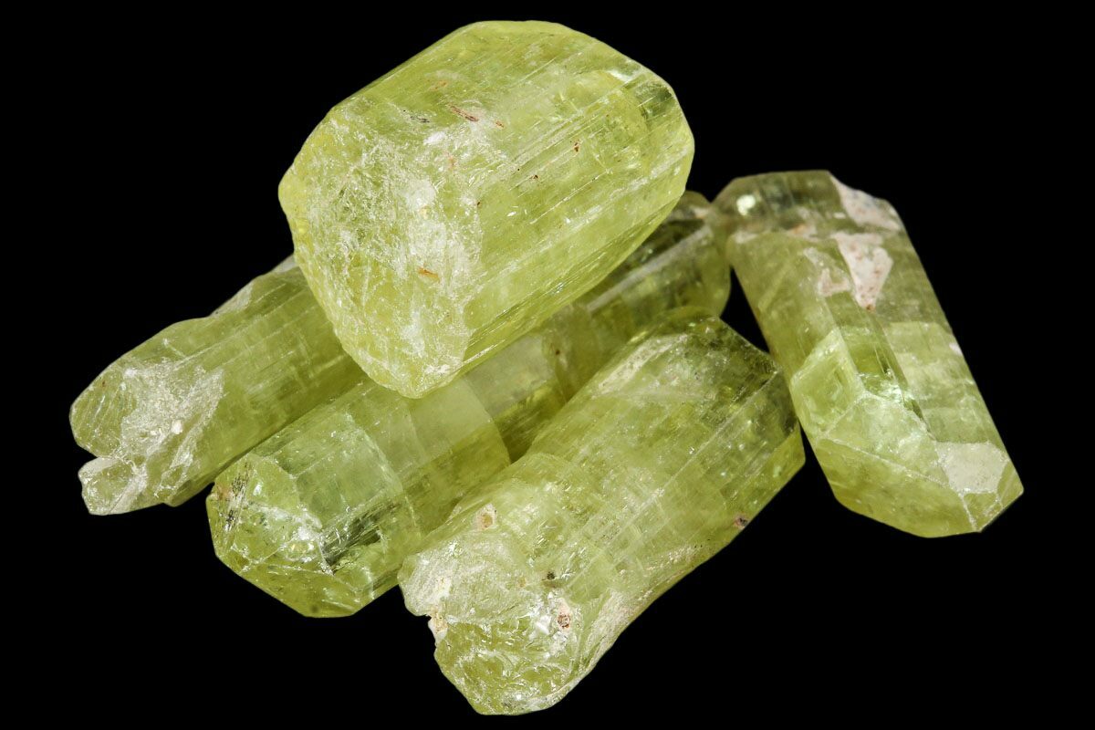 This is a bag of 5, greenish-yellow apatite crystals with good terminations, collected from Imilchil, Morocco. You will receive the 5 crystals that are pictured above.