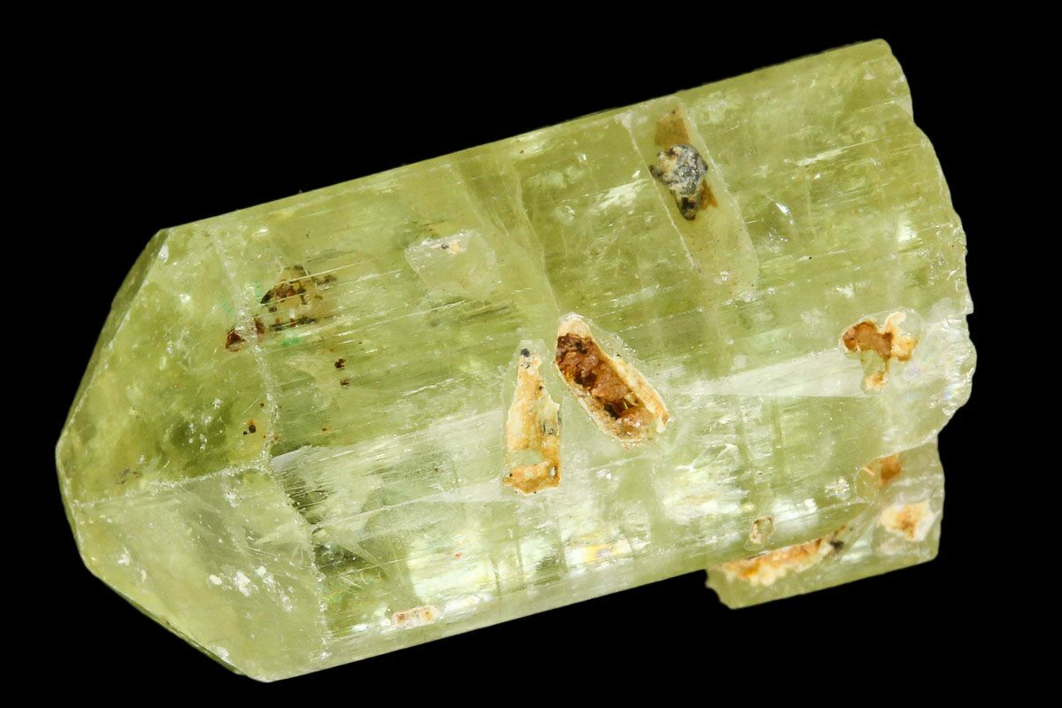 Apatite is the name given to a generic group of isomorphous hexagonal phosphate minerals. Its name comes from the Greek word apatite, which means 'to deceive': this is because apatite often resembles other common hexagonal-habit minerals. Their bright, lustrous crystals are often found in vugs (small cavities in rock) associated with quartz and calcite. Many crystals are around an inch in length, though larger crystals up to about 4 inches long have been found.