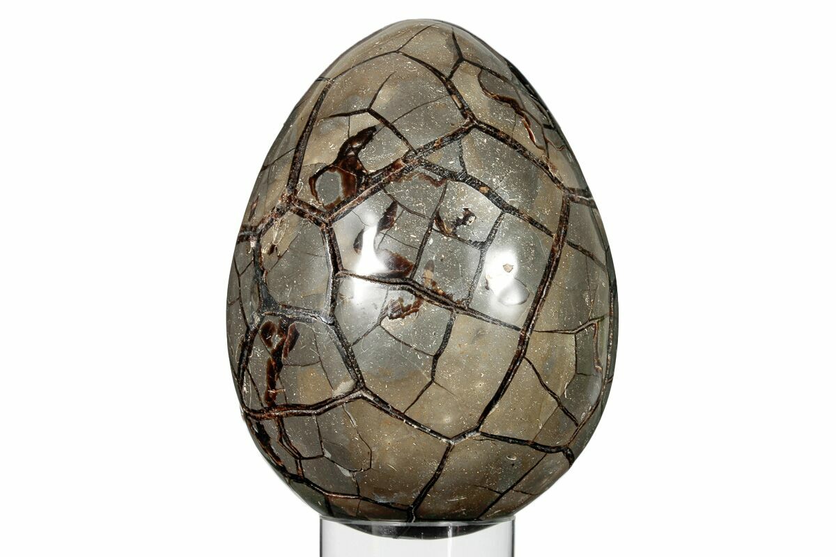 There are several repaired cracks and spots of gap fill restoration throughout this septarian egg. The interior crystals are still in excellent condition. This repair has been reflected in the price.
