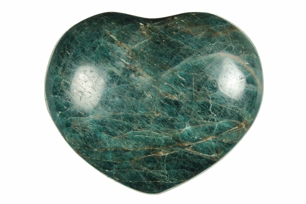 This beautiful, polished stone heart is made from blue apatite, collected from Madagascar. Forming and polishing these hearts takes a great deal of time, and that craftsmanship combined with the specimen's electric blue color creates a stunning piece that can only be appreciated in person.