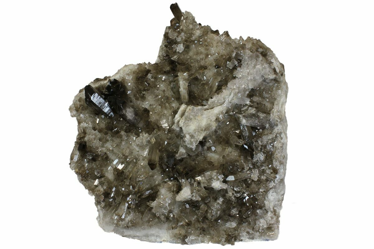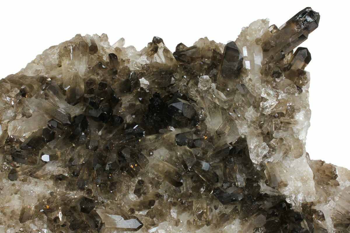 This is a large, freestanding smoky quartz crystal cluster from Minas Gerais, Brazil. Both sides of the specimen featured smoky quartz crystals and One edge of the specimen has been cut flat, allowing for a gorgeous freestanding presentation.