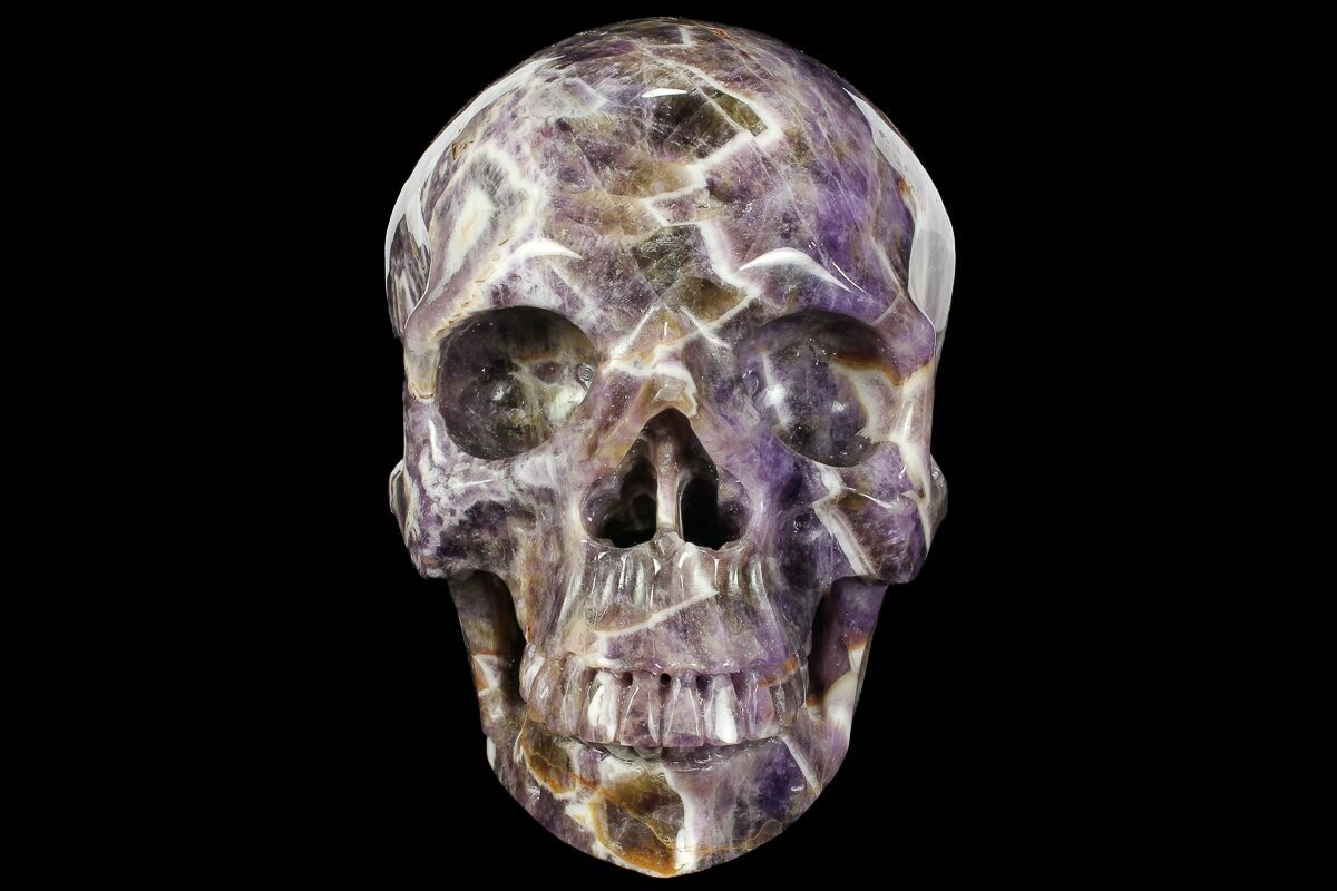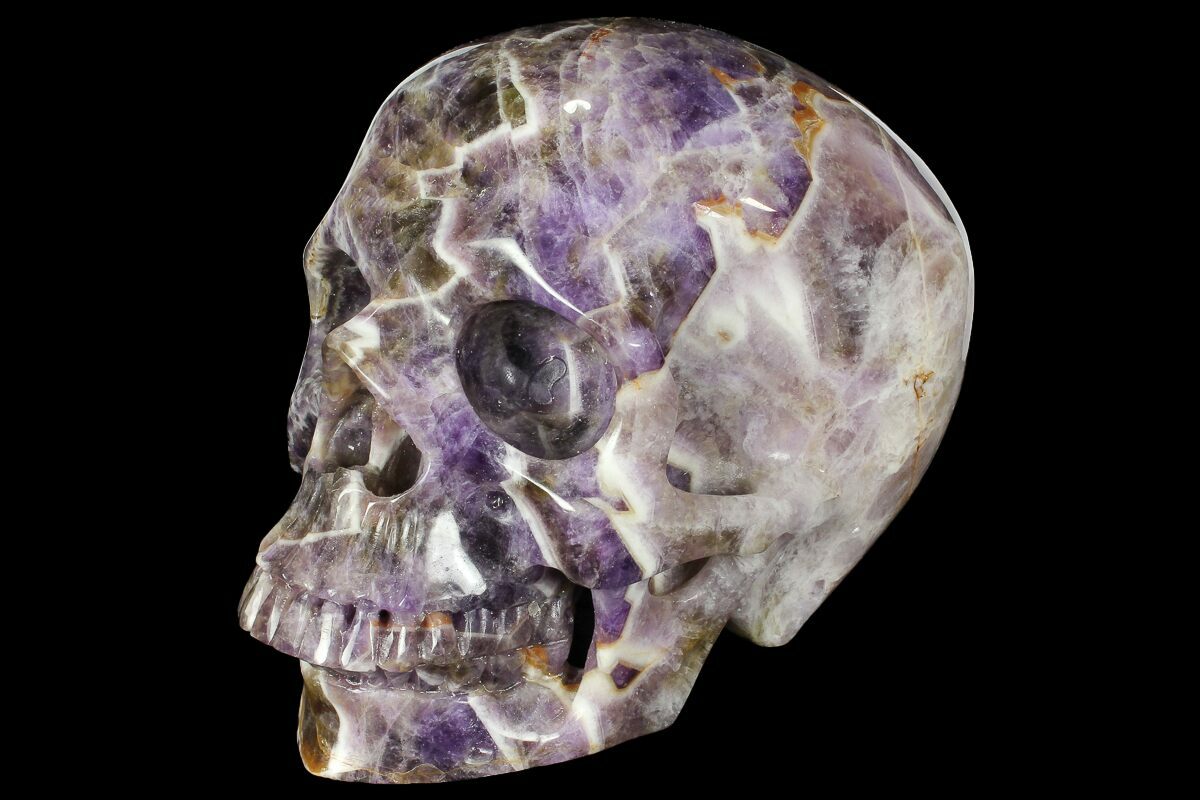 Huge, 6.8" Realistic, Carved Chevron Amethyst Skull