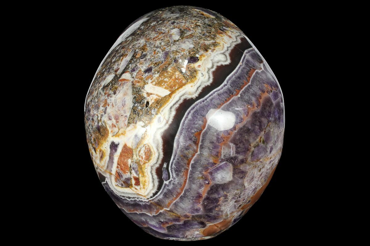 Amethyst is a purple variety of quartz (SiO2) that owes its violet color to natural gamma irradiation, iron impurities, and the presence of trace elements, which result in complex crystal lattice substitutions. It is considered a semi-precious gemstone, and just two centuries ago was considered to have a value on par with diamonds, sapphires, and rubies. The largest and best known amethyst deposits occur in southern Brazil and Uruguay, where they are found in hydrothermally-formed geodes, but many localities around the world produce an amazing variety of amethyst crystals and formations. They are almost always formed in medium- to high-temperature geological settings.