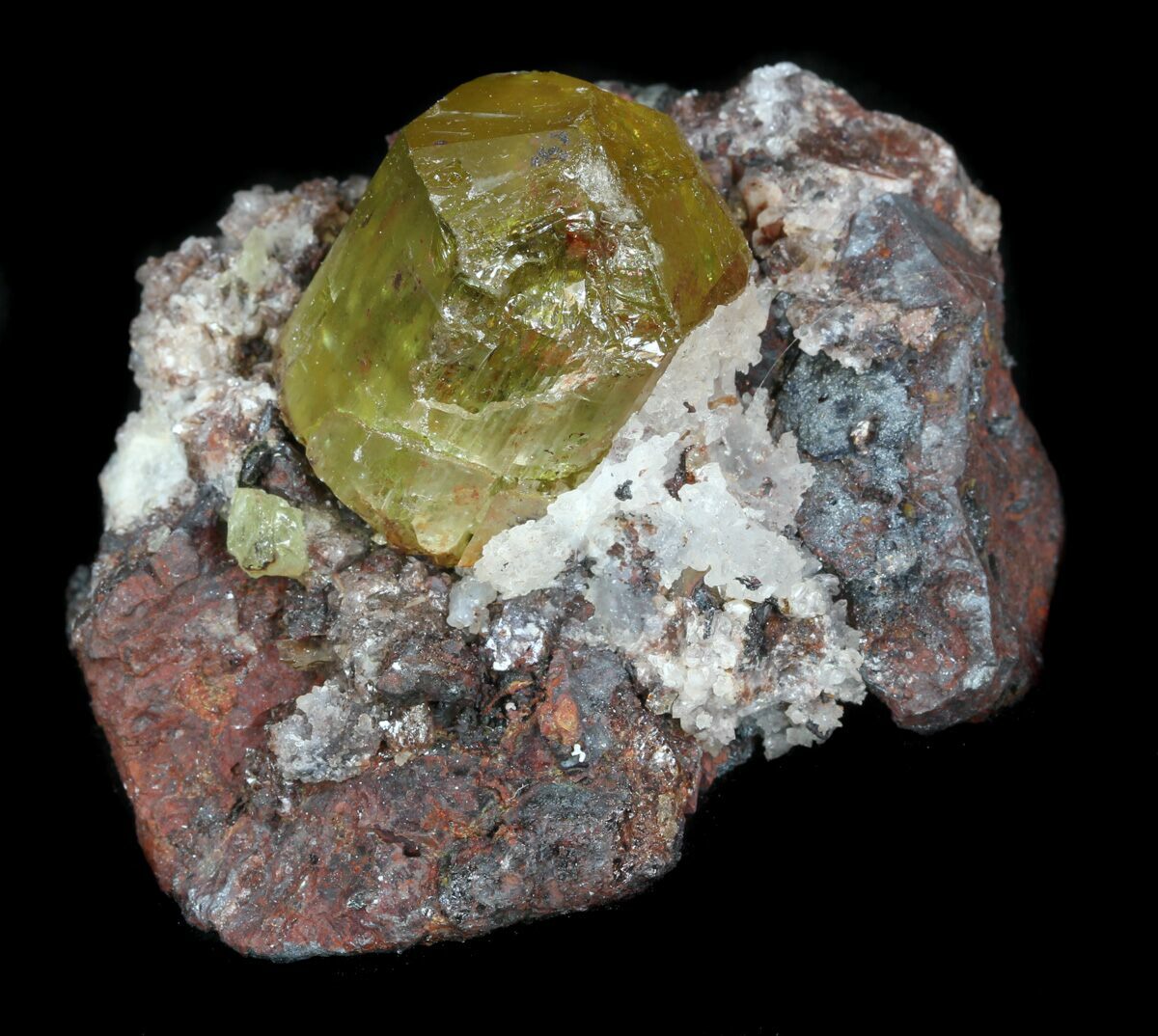 At Cerro de Mercado numerous veins containing gemmy, lemon-yellow to greenish fluorapatite crystals cut through the hematite massif. These crystals have been collected for decades from the area's iron mines, but they have become much scarcer with recent mechanization of the mining operations.