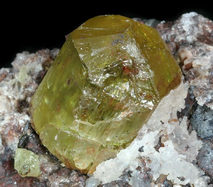 This is a thick, mountain dew colored Fluorapatite crystal still in matrix from Cerro del Mercado (Iron Mountain) at Durango, Mexico.
