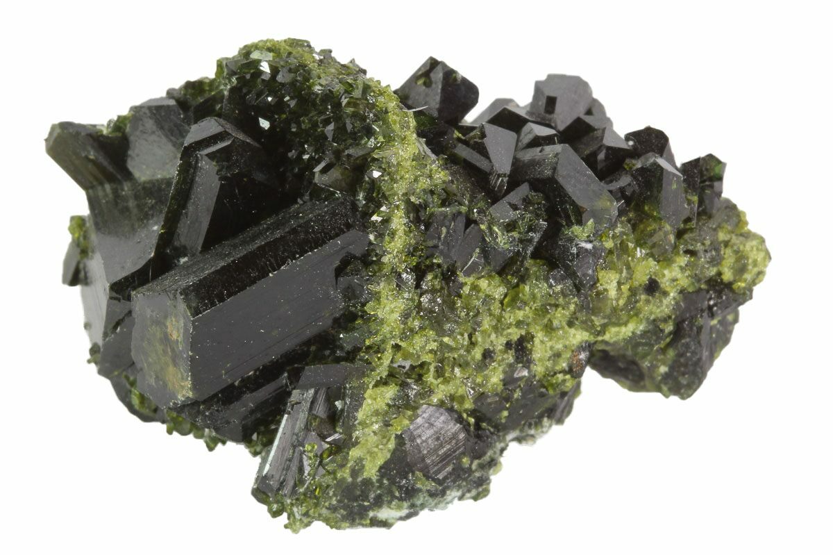 It is commonly associated with minerals such as quartz, feldspar, and garnet, often forming in metamorphic rocks like schist and gneiss. It can also be found in skarn deposits alongside minerals like calcite, diopside, and amphiboles. These associations can provide insights into the geologic history and metamorphic conditions of the region. Epidote is found in locations worldwide, with notable sources including Austria, Norway, Pakistan, and parts of the United States. Collectors prize epidote for its unique green hues and well-formed crystal clusters.