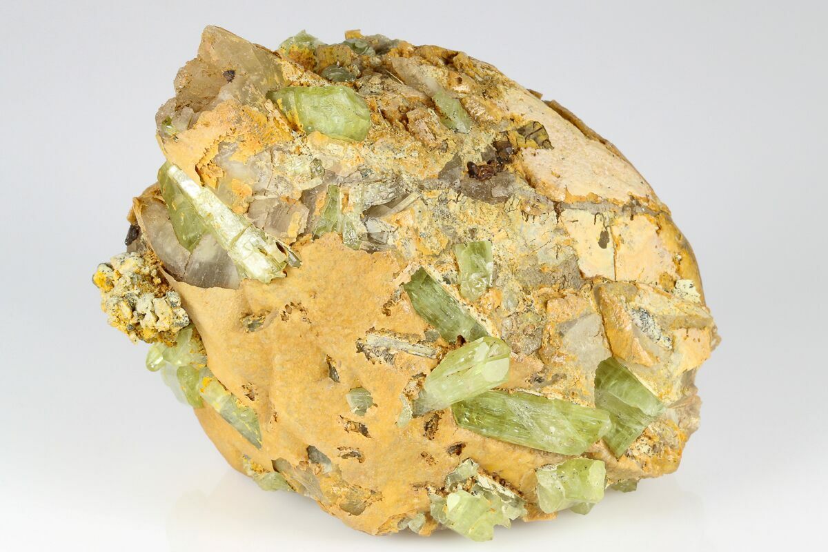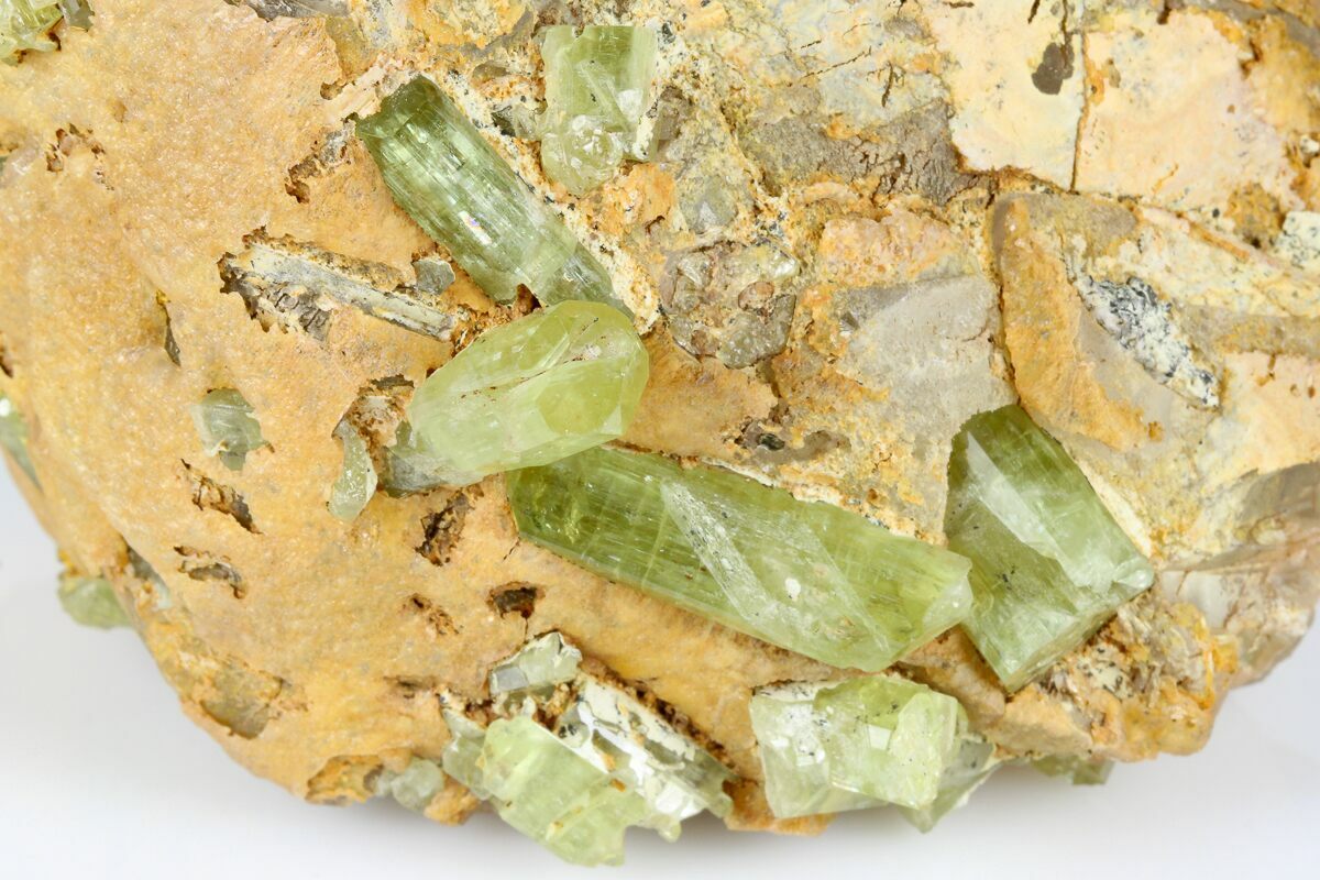 Lustrous, Yellow Apatite Crystals In Calcite & Feldspar - Morocco
