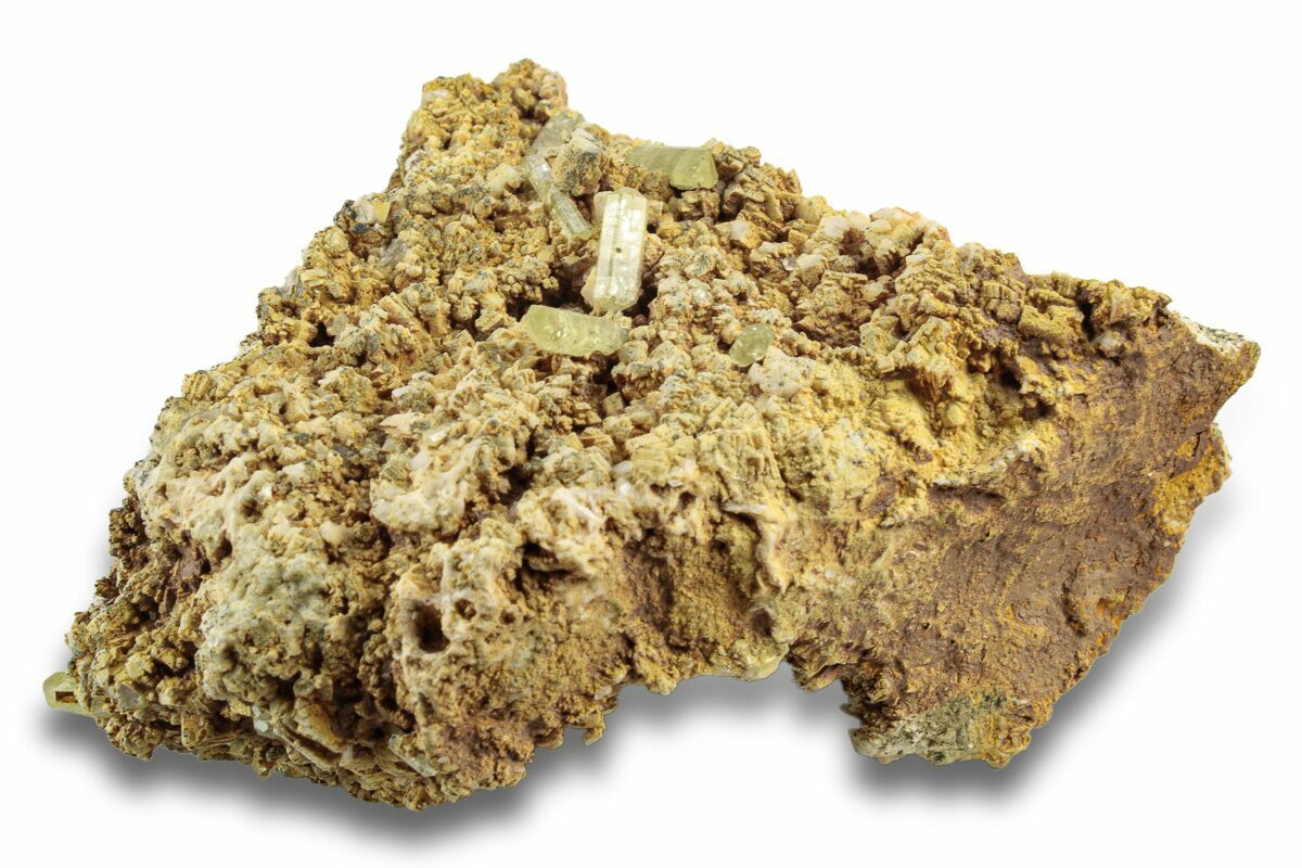 Lustrous, Yellow Apatite Crystals on Feldspar - Morocco