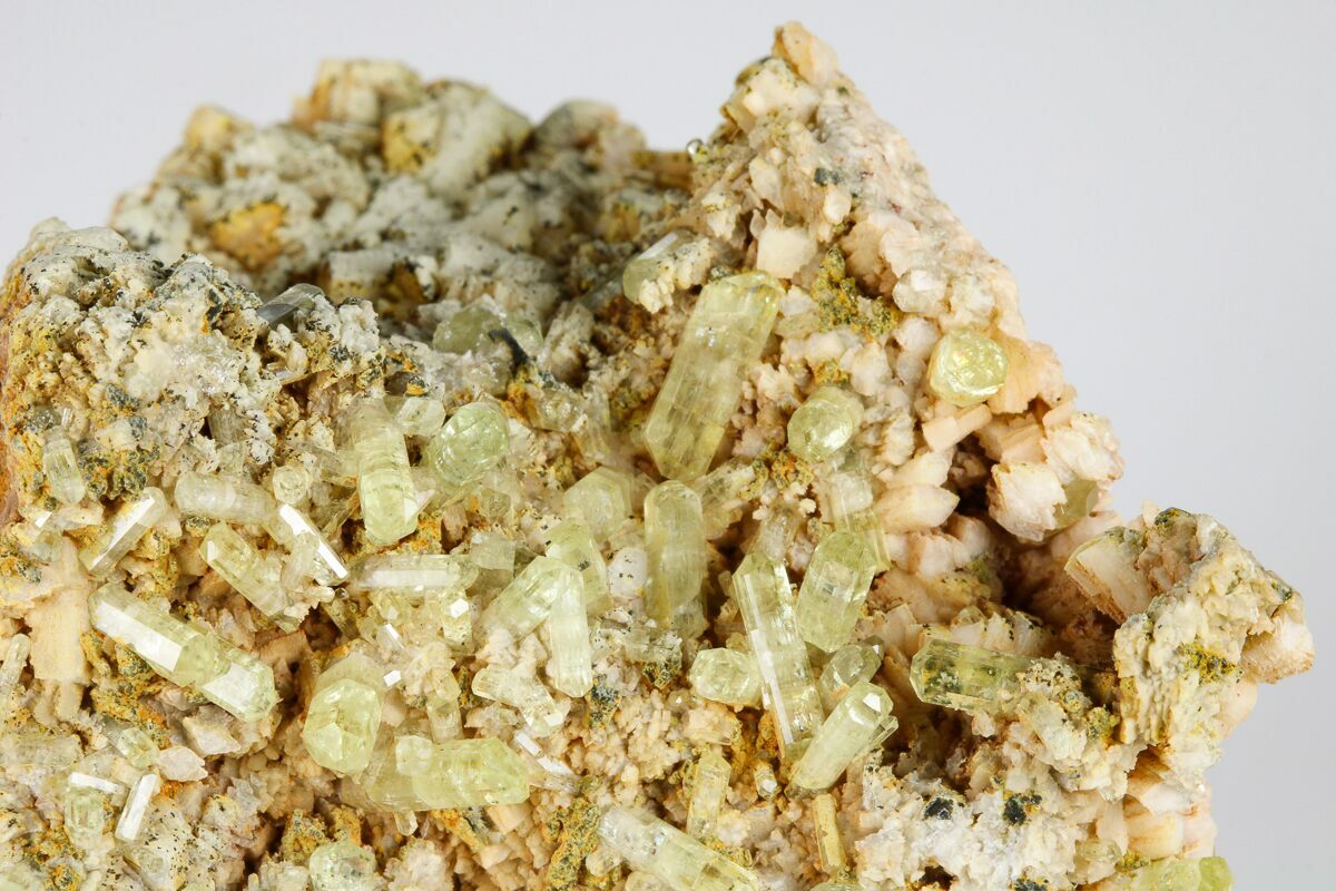 Lustrous, Yellow Apatite Crystals on Feldspar - Morocco