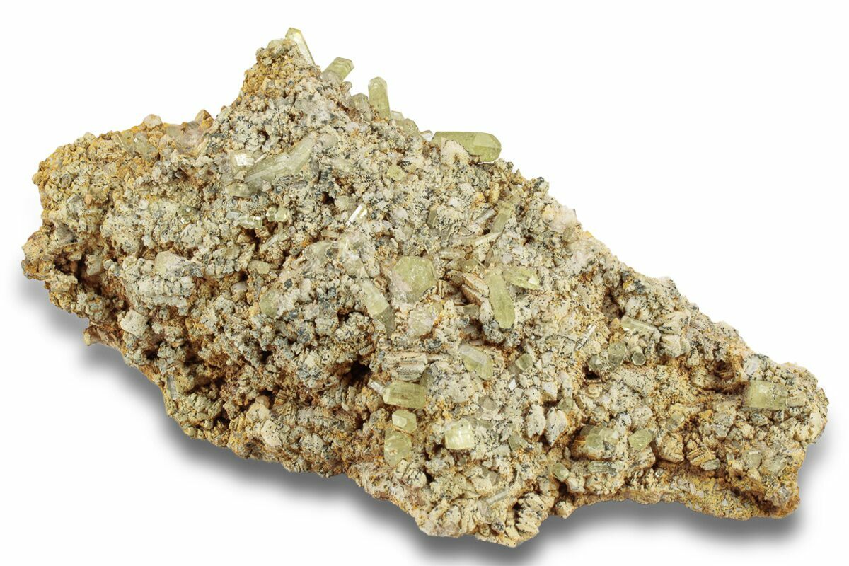 Lustrous, Yellow Apatite Crystals on Feldspar - Morocco