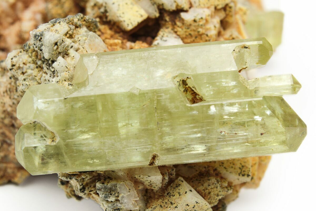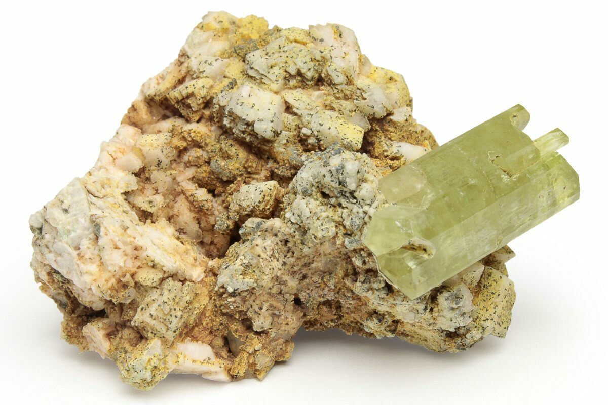 Lustrous, Yellow Apatite Crystals With Feldspar - Morocco