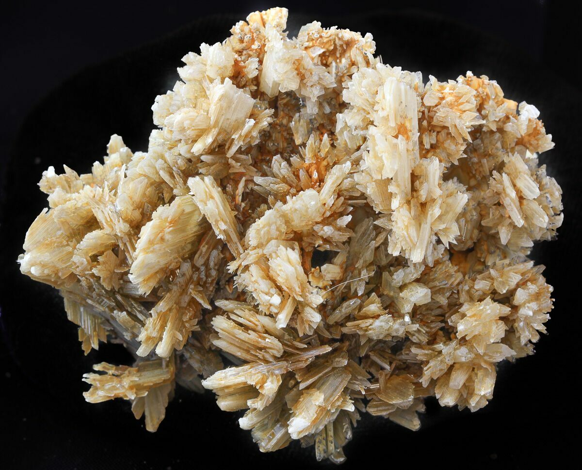 This is a red-orange specimen containing fibrous blades of selenite crystals surrounding matrix, from Chihuahua, Mexico. Many of these crystals have beautiful terminations and well formed, striated crystals.
