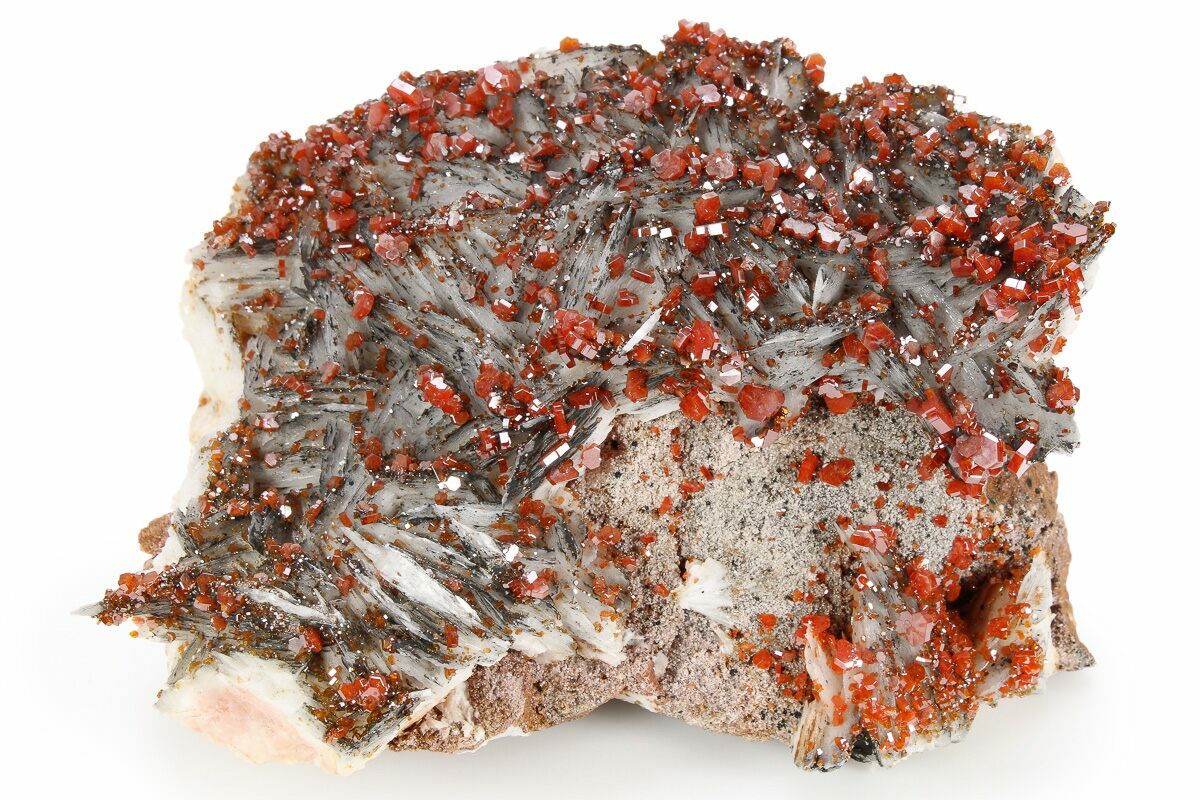 Top-Quality, 5.1" Deep Red Vanadinite Crystals on Barite - Morocco