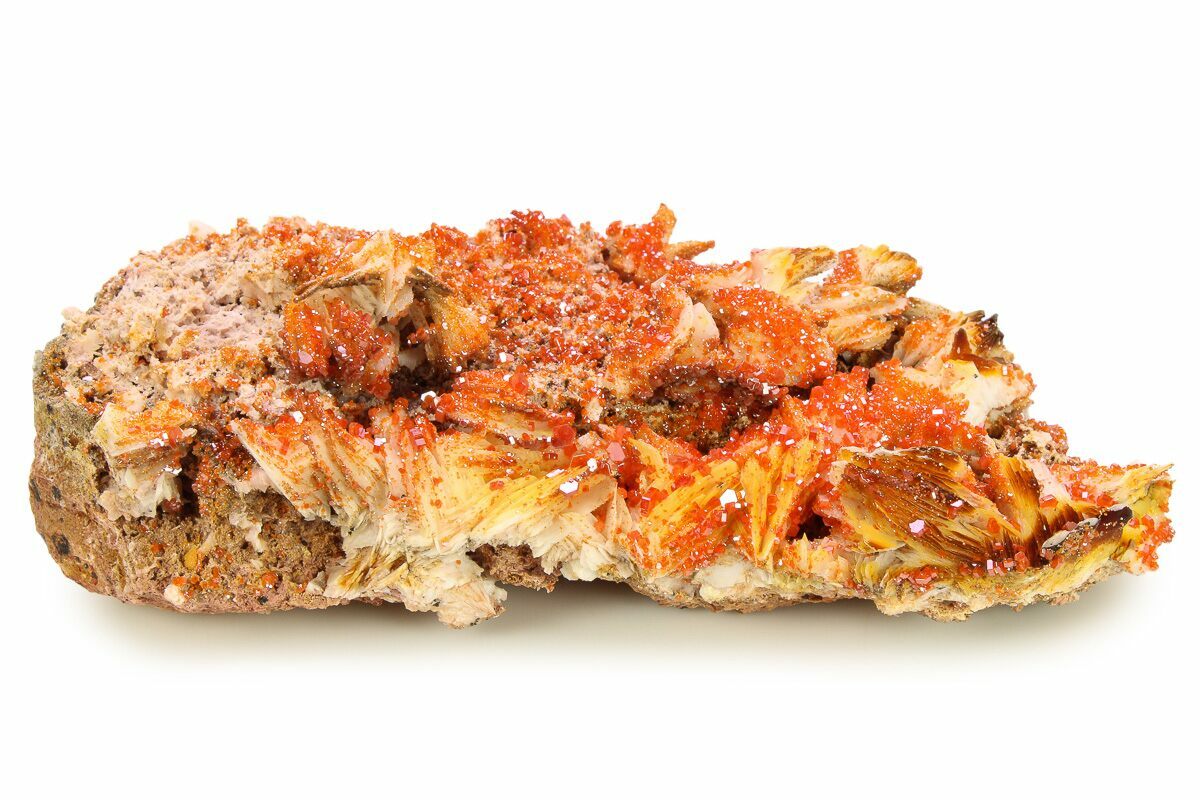7.8" Vanadinite Crystals on Barite - Unique Bright Orange Color