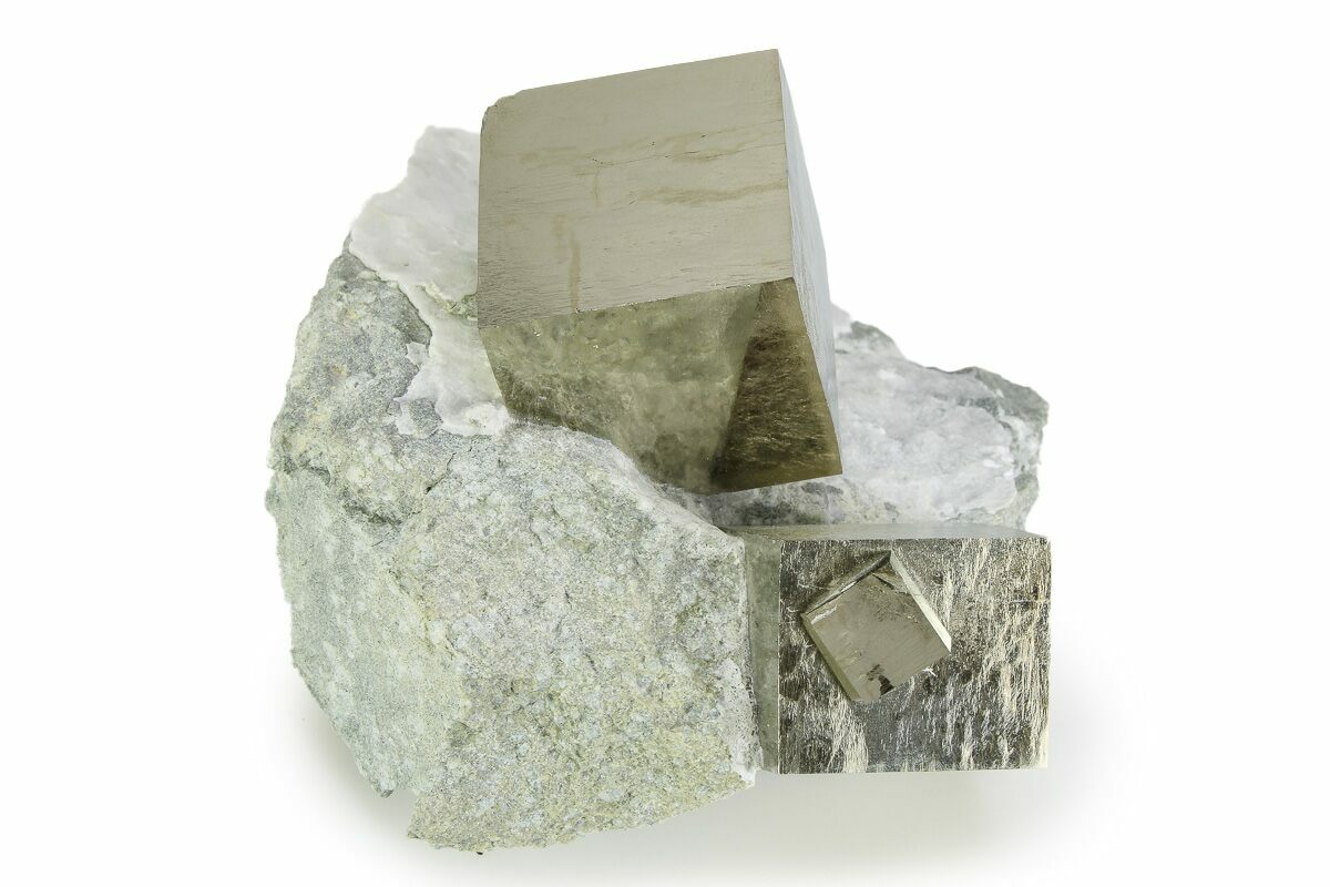 Two Large Shiny Pyrite Cubes In Rock - Navajun, Spain