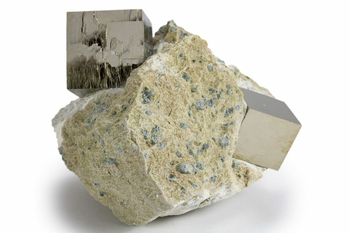 Two Natural Pyrite Cubes In Rock - Navajun, Spain