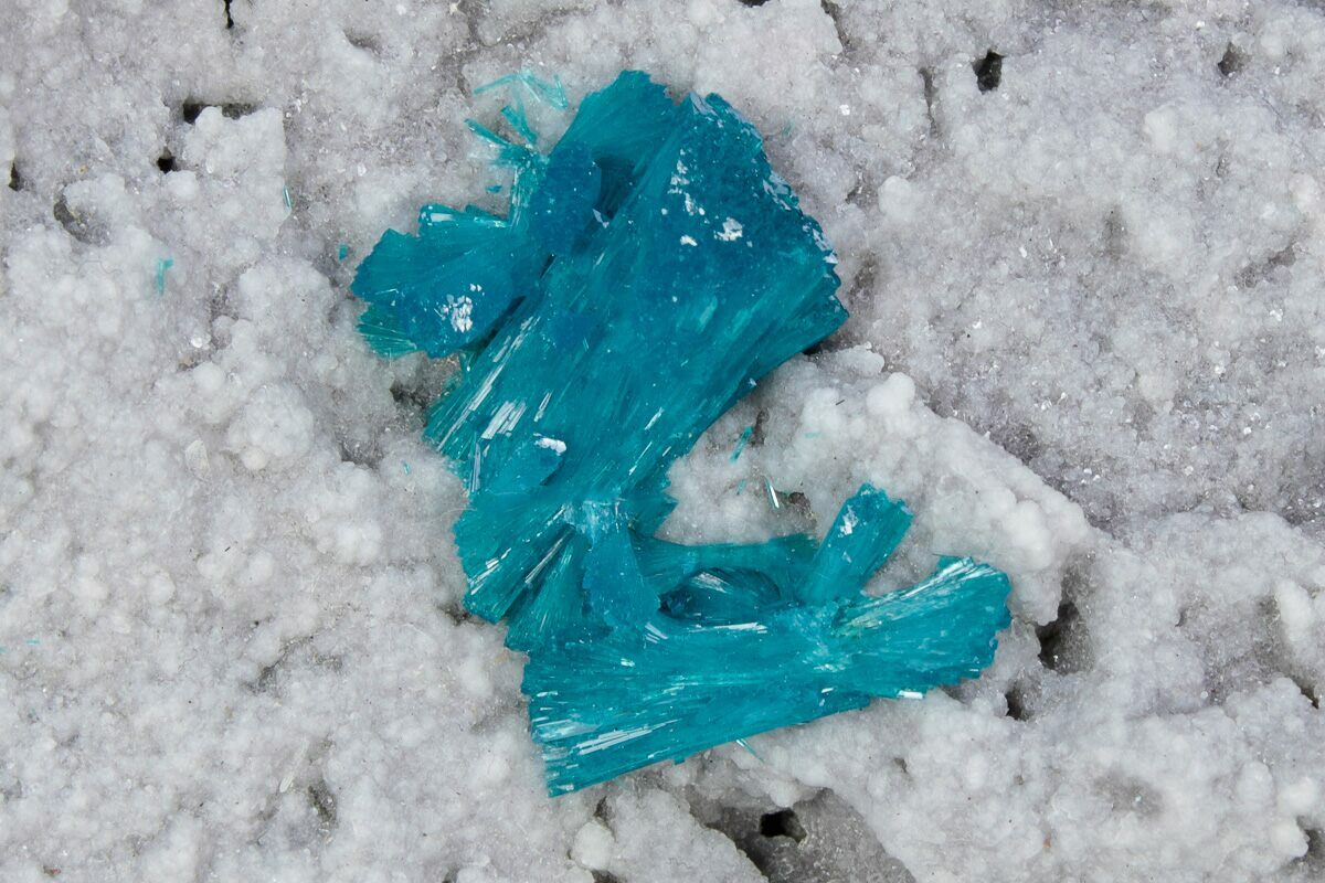 The most celebrated minerals from the Deccan Traps are the zeolites, a broad group of hydrated aluminosilicates that form in the rock’s open cavities. Notable species include brilliant, transparent apophyllite crystals—often mint green or water-clear—alongside delicate sprays of stilbite, heulandite, clinoptilolite, mesolite, scolecite, and natrolite. These minerals frequently grow together, producing striking aesthetic arrangements: apophyllite perched on peach-colored stilbite “bowties,” needle-like mesolite clusters exploding out of basalt pockets, or shimmering heulandite druses lining geodes. The region is also the world’s premier source for vivid blue cavansite and its rarer green cousin, pentagonite, which form radiant starburst clusters on matrix. While the Deccan Traps are volcanic in origin, they are celebrated globally among collectors for these extraordinary mineral treasures—vibrant, elegant, and unmistakably Indian in character.
