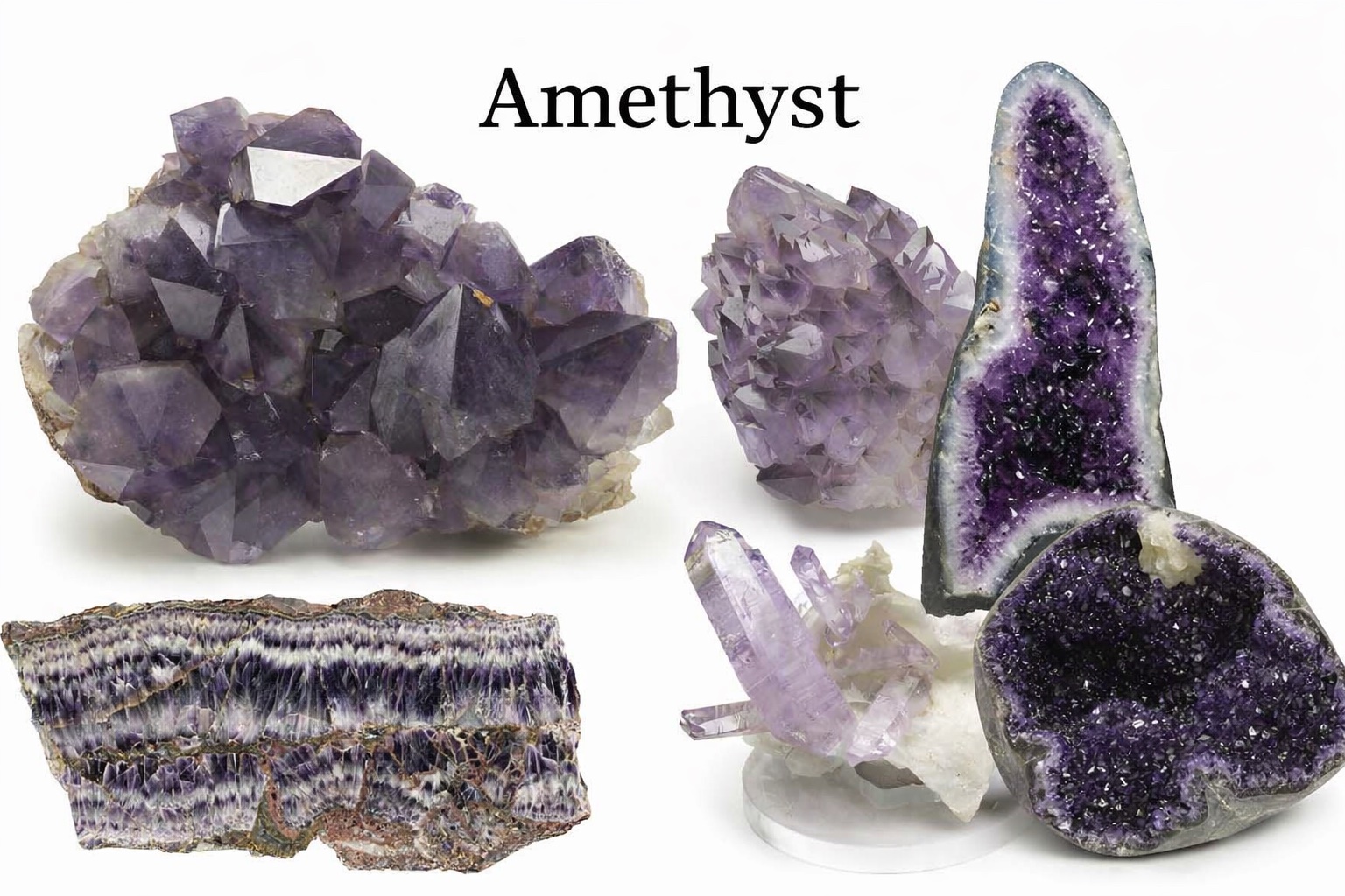 Amethyst occurs in a wide range of crystal habits and mixed-color forms, many of which are considered distinct varieties by collectors due to their unusual growth patterns or visual characteristics. These special forms record subtle changes in chemistry, temperature, or growth conditions during crystallization, making them scientifically interesting as well as visually distinctive. Some varieties are defined by internal structure and zoning, while others are defined by dramatic crystal habits that differ from the classic single-point amethyst crystal.