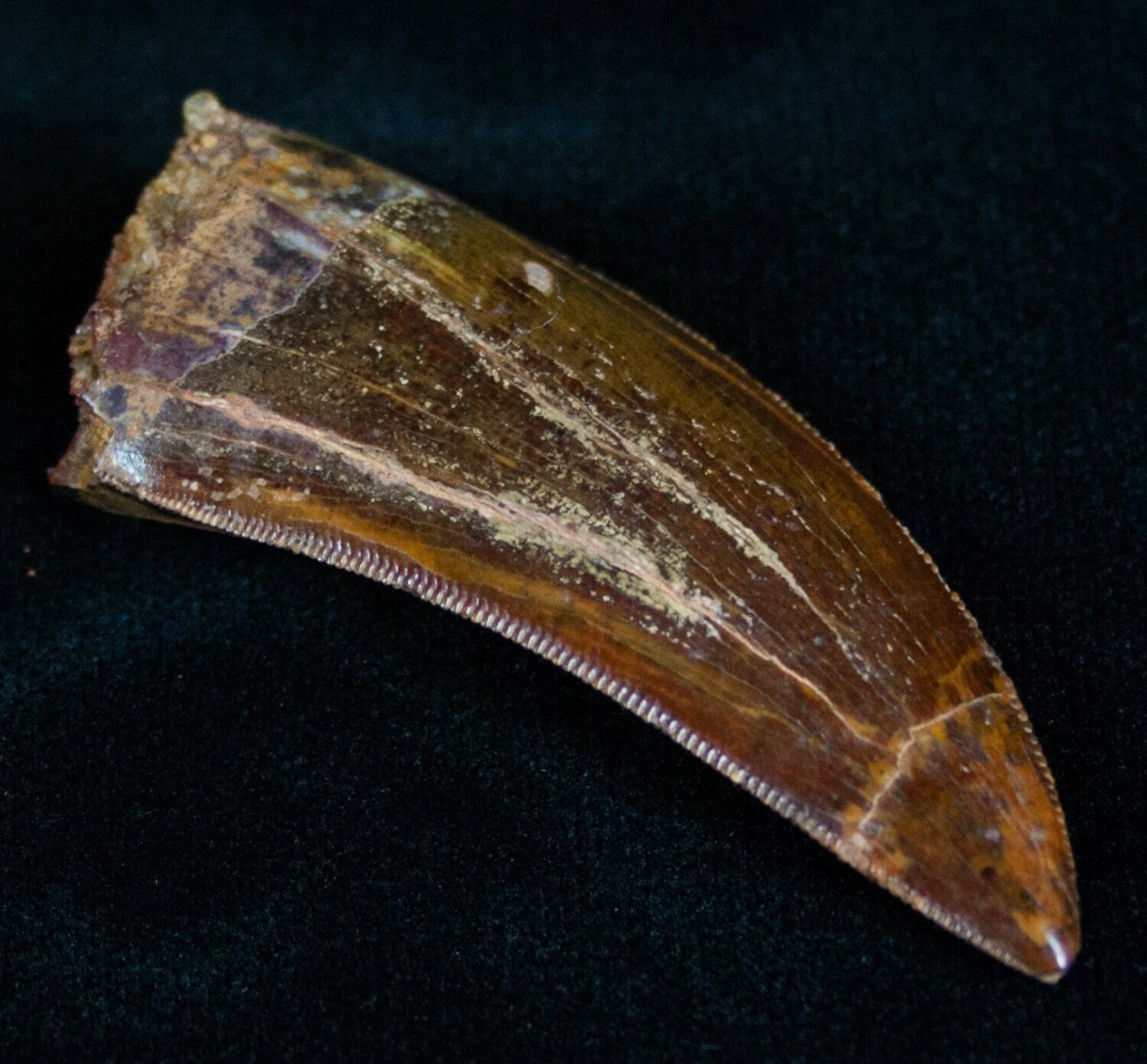 Carcharodontosaurus was originally only know from a couple of teeth that were lost in the same WWII bombing that destroyed the remains of Spinosaurus. Newer discoveries have been found of this Cretaceous carnivore that have shed more light as to how it lived. Carcharodontosaurus had enormous jaws that contained approximately 64 long, blade-like and very sharp serrated teeth up to eight inches long. It had one of the largest skulls and was equal to, and often larger than that of Tyrannosaurus. The teeth are relatively narrow, curve slightly back and have slight enamel wrinkles that spread out from the carinae. It was a contemporary of Spinosaurus and because of the completely different tooth structure its obvious these massive predators dined on different prey. View Carcharodontosaurus Teeth For Sale...