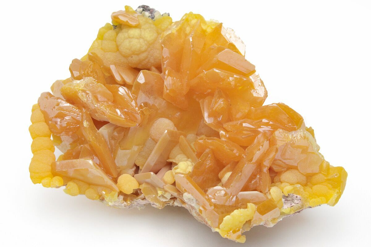 Chemically known as lead molybdate (PbMoO₄), wulfenite is a secondary mineral that forms in the oxidized zones of lead ore deposits. Its formation requires a very specific combination of lead and molybdenum-rich fluids, making high-quality wulfenite comparatively rare. This scarcity, combined with its intense coloration and high adamantine to resinous luster, has made wulfenite one of the most sought-after minerals for collectors worldwide. Interestingly, despite containing lead, wulfenite crystals often form with sharp, delicate edges and pristine faces, giving them a jewel-like appearance.