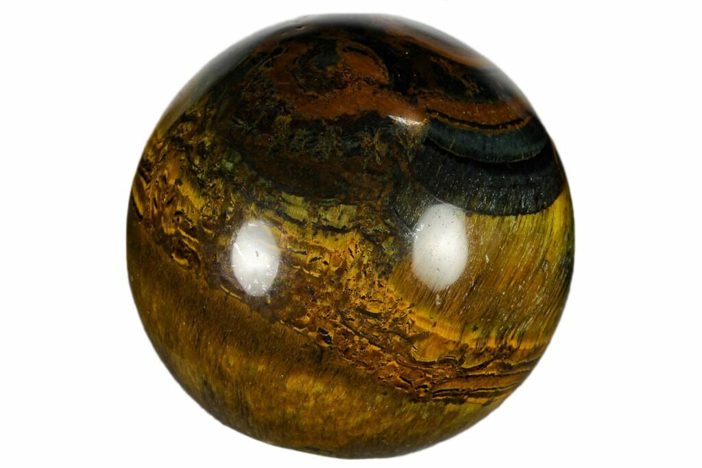This is a 30mm (1.2 inch) wide polished, blue tiger's eye sphere.