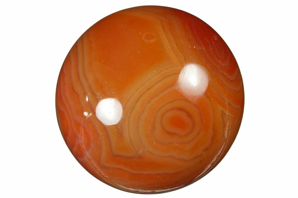 This is a 30mm (1.2") wide polished, carnelian agate sphere. The pictures are representative of the specimen(s) you will receive, so there may be some variation patterns and color.