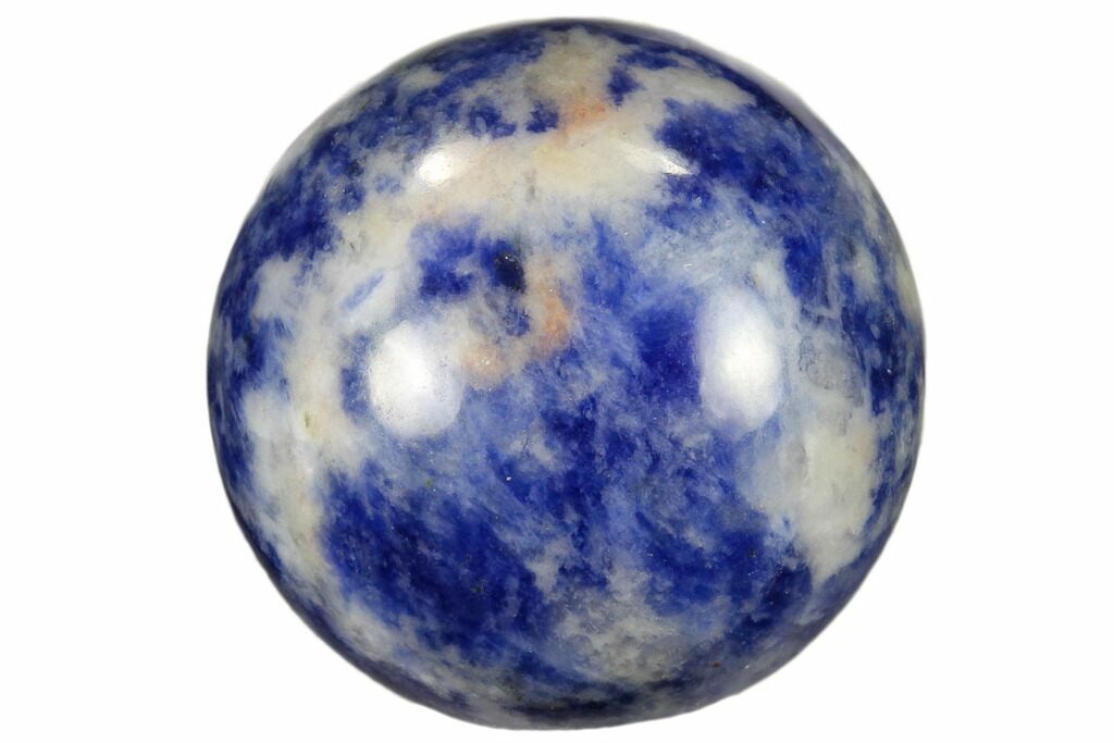 This is a small, 30mm (1.2 inch) wide polished, sodalite sphere.