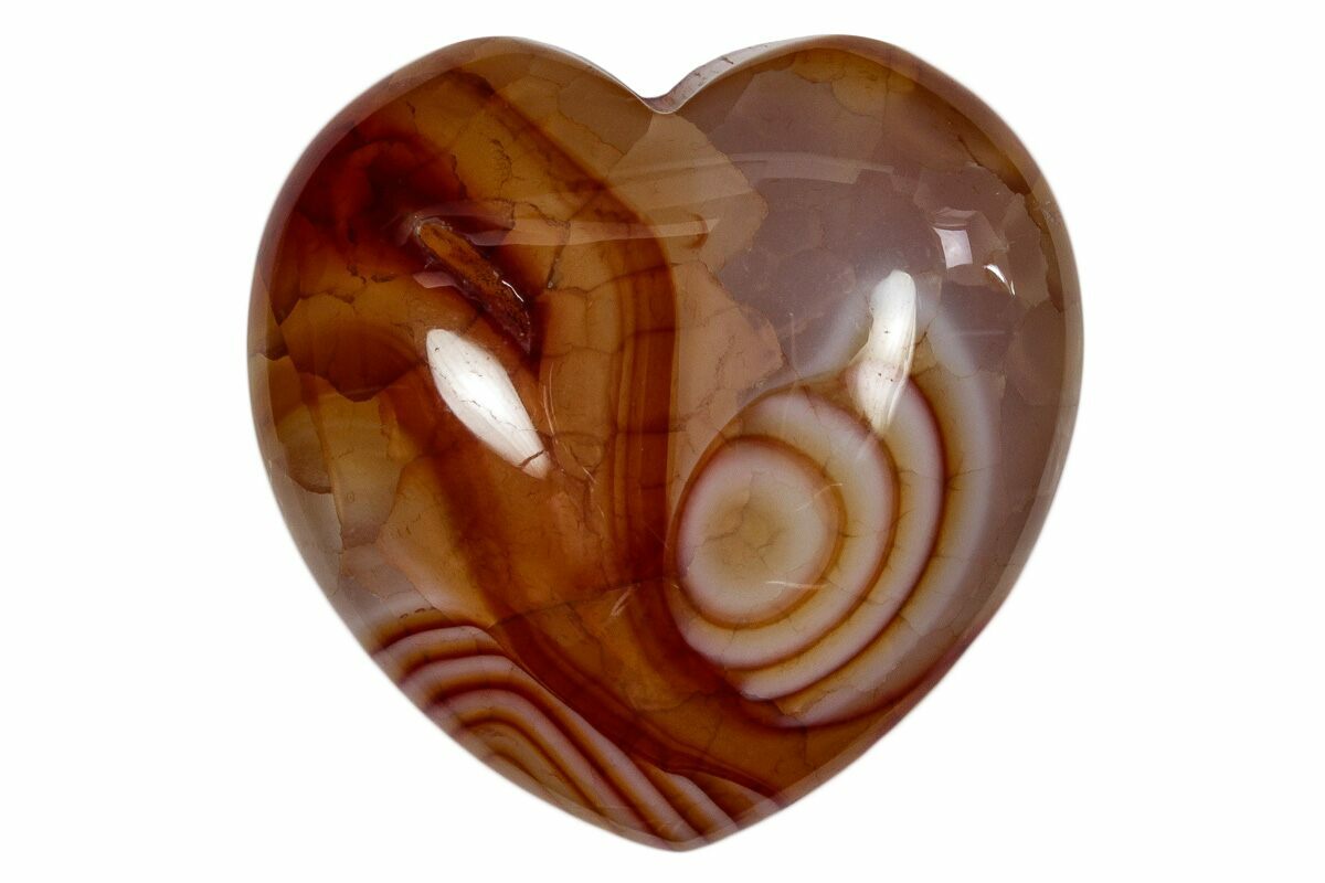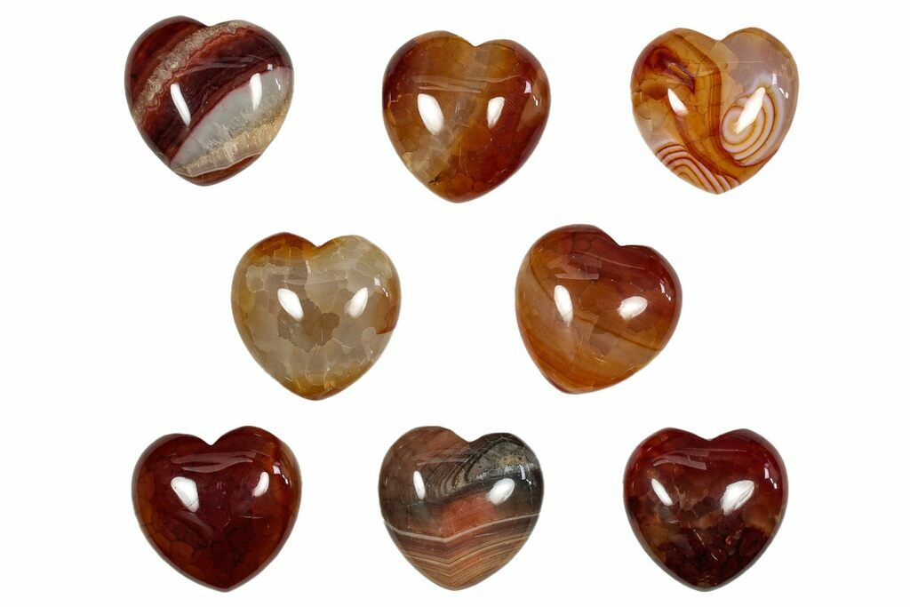 These are gorgeous, 1.5" wide polished fire agate hearts. The pictures are representative of the specimen(s) you will receive, so there may be some variation in patterns and coloration. Quantity discounts are available!