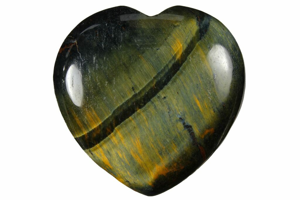 These are 1.6" wide, polished, blue tiger's eye hearts.