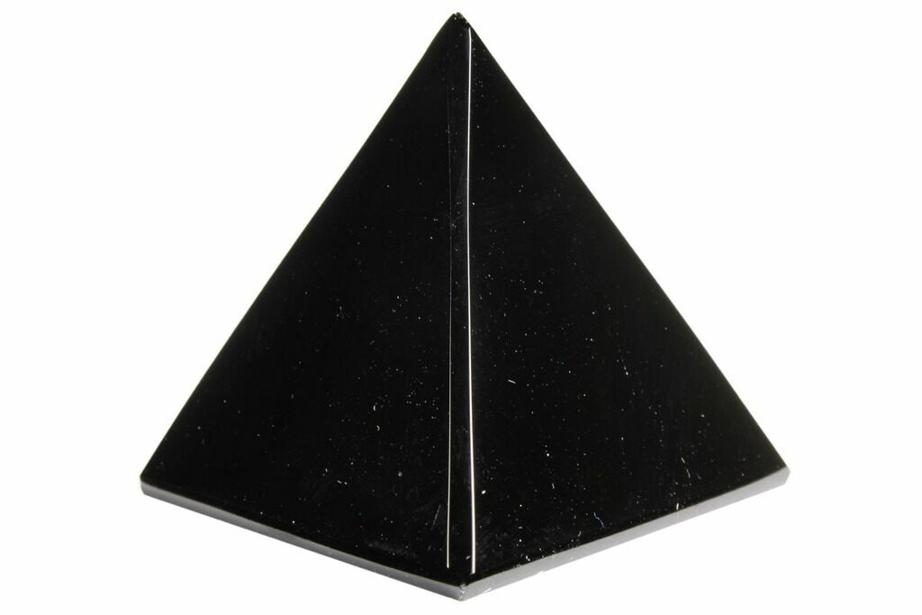These are 1 3/5" wide, cut & polished pyramids of black obsidian (volcanic glass) mined in Jalisco, Mexico. The pictures are representative of the pyramid(s) you will receive but don't picture the exact ones. Quantity discounts available.