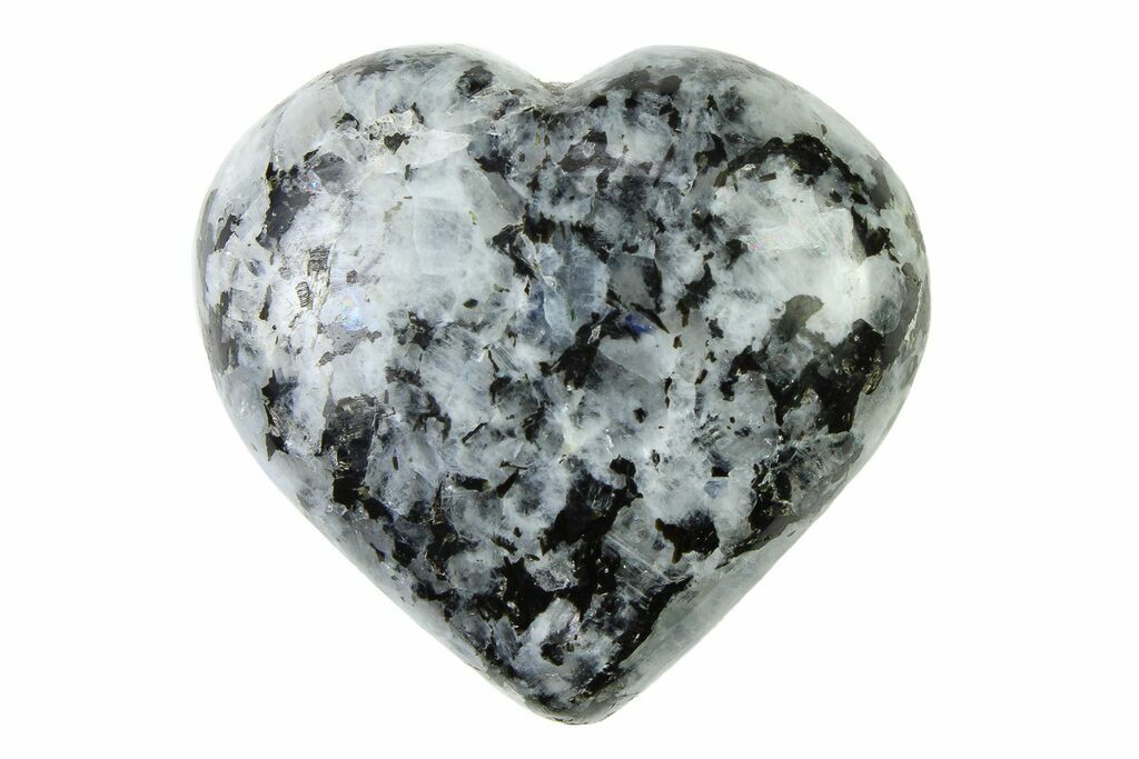 These are 1.6" wide polished "rainbow moonstone" hearts. Most of the stones exhibit a blue adularescent effect in spots. The pictures are representative of the specimen(s) you will receive, so there will be some slight variation in size, shape, and adularescence from specimen to specimen.