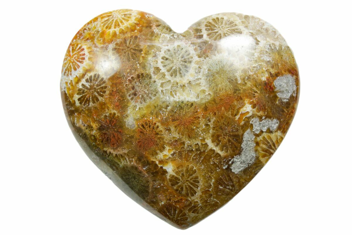 These are beautiful polished fossil coral hearts from Indonesia. The polishing allows the intricate, fossilized structure of the coral to be seen.