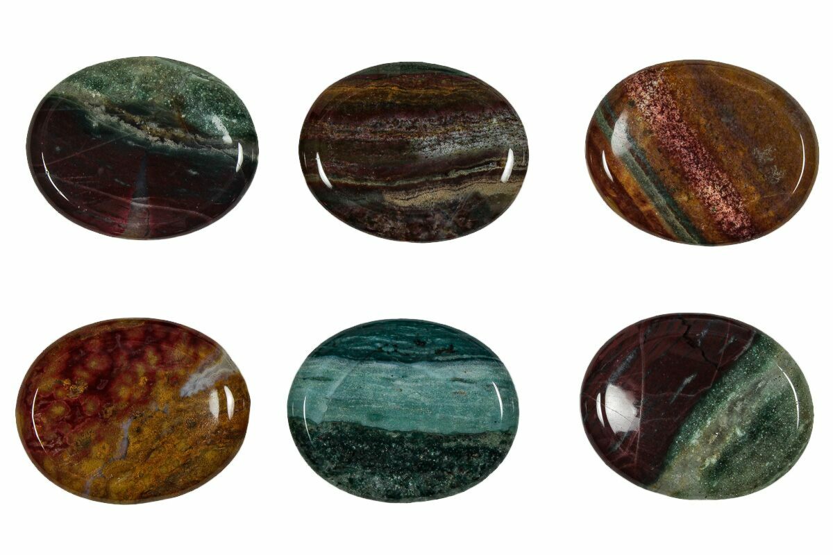 These are 1.9" wide, polished, Cherry Creek Jasper worry stones.
