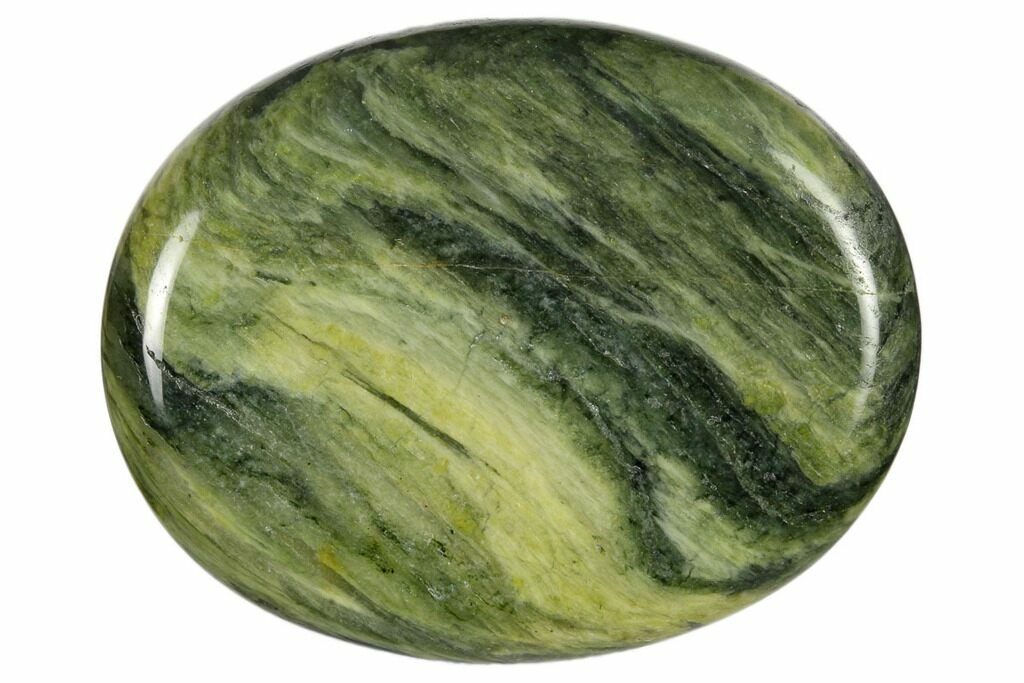 Green hair jasper, also known as "green hair stone", is the trade name for an agate formation that contains streaked inclusions of a mossy green opaque mineral. In some specimens, the green hair-like inclusions will appear as plume formations, while others feature layered formations. It polishes beautifully, creating excellent display and jewelry pieces.