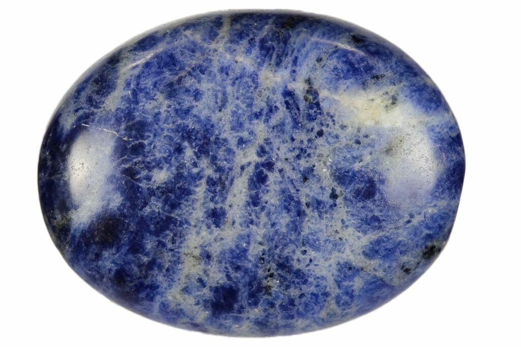 This is a 1.7" wide polished sodalite pocket stone. Being that these are natural stones, there will be some variation in pattern and color from specimen to specimen. Quantity discounts are available.
