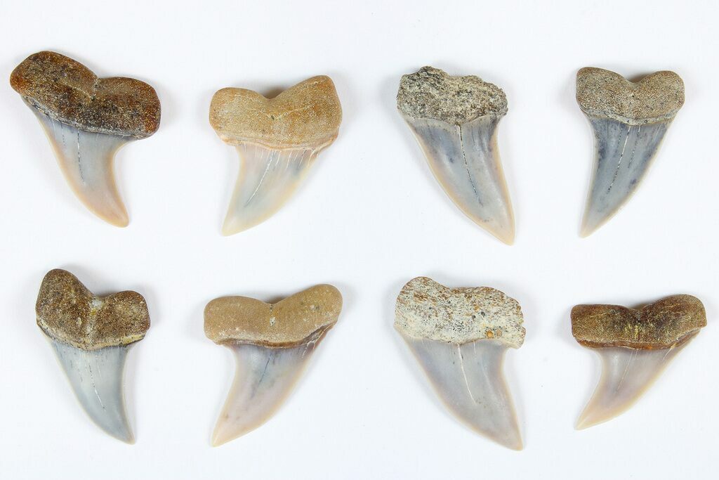 These are fossil shark teeth from the Temblor Formation near Bakersfield, California. They are approximately 15 million years old and represent the species Carcharodon (Isurus) planus. They range from 1 to 1 1/4" in length. The photos are representative of the teeth you will receive but don't picture the exact ones. Quantity discounts are available.