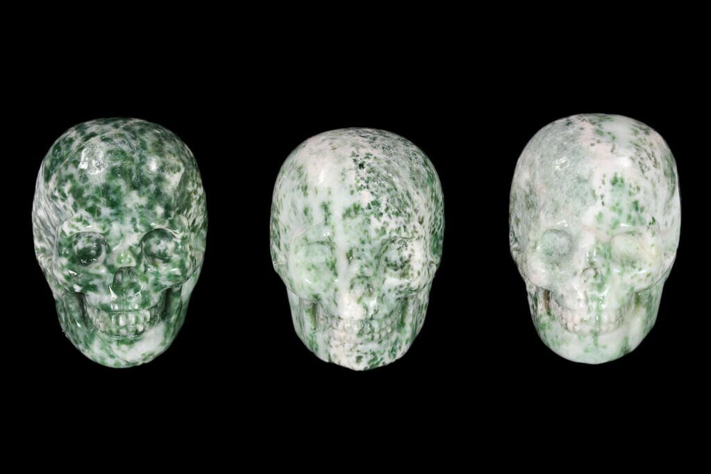 These are 2" long skulls made from hamine jasper from India. The pictures are representative of the specimen(s) you will receive, so there may be some slight variation in shape and color.