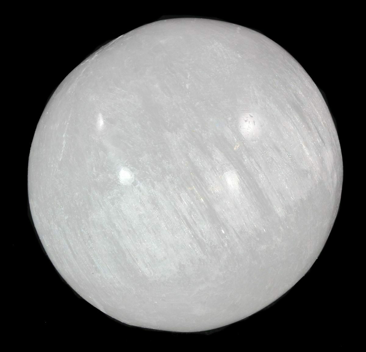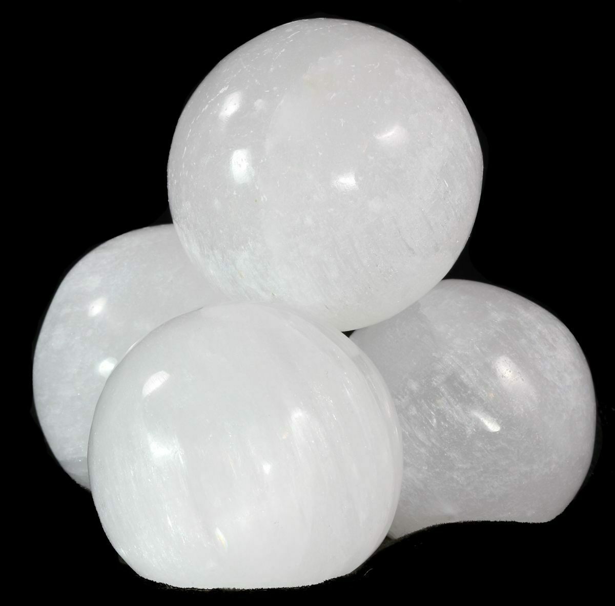 These are polished spheres made from selenite mined in Morocco. They are approximately 2" wide, though because they hand made there is some variation in size.