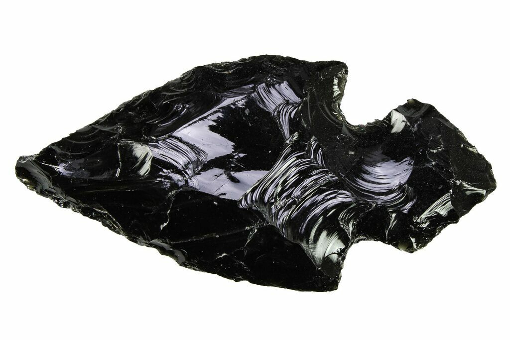 These are hand-knapped obsidian (volcanic glass) spear points. On average they measure about 4 1/2" long, but because they are hand-made the exact size varies slightly.