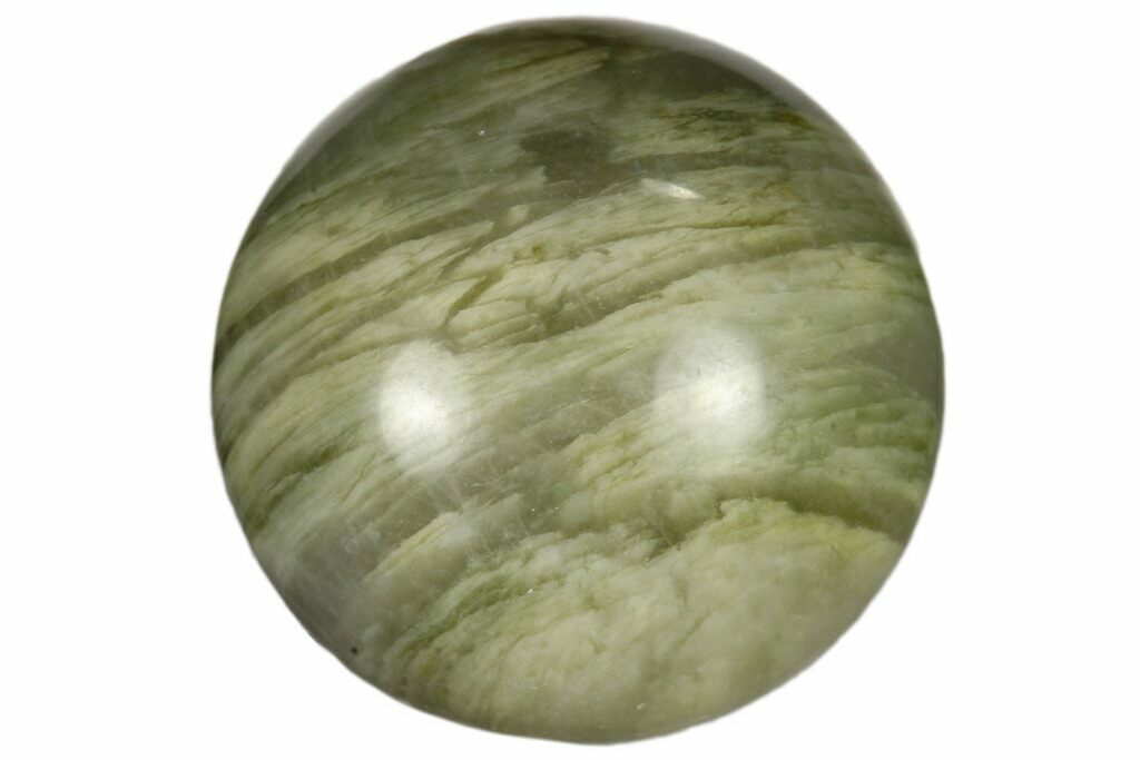 This is a 22mm (.9") wide polished, Green Hair Jasper sphere.