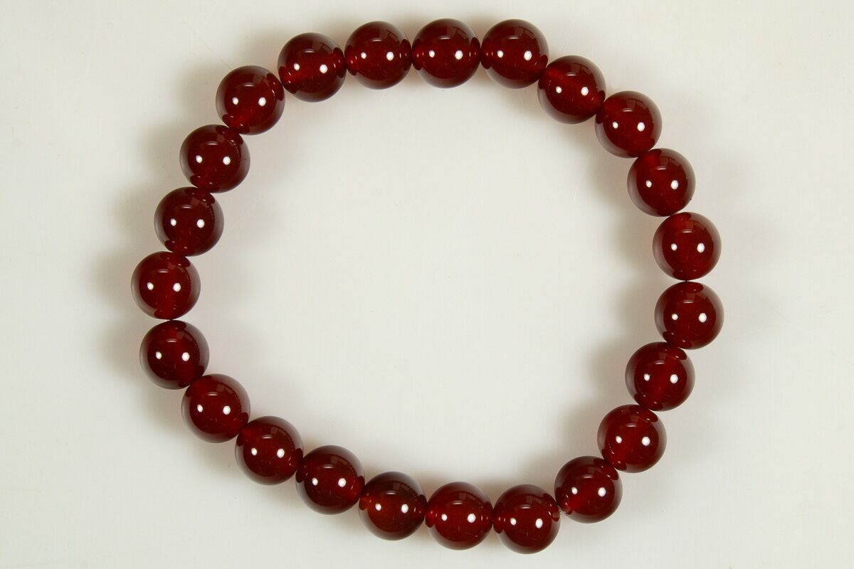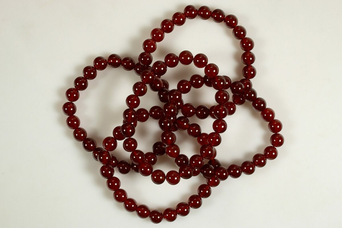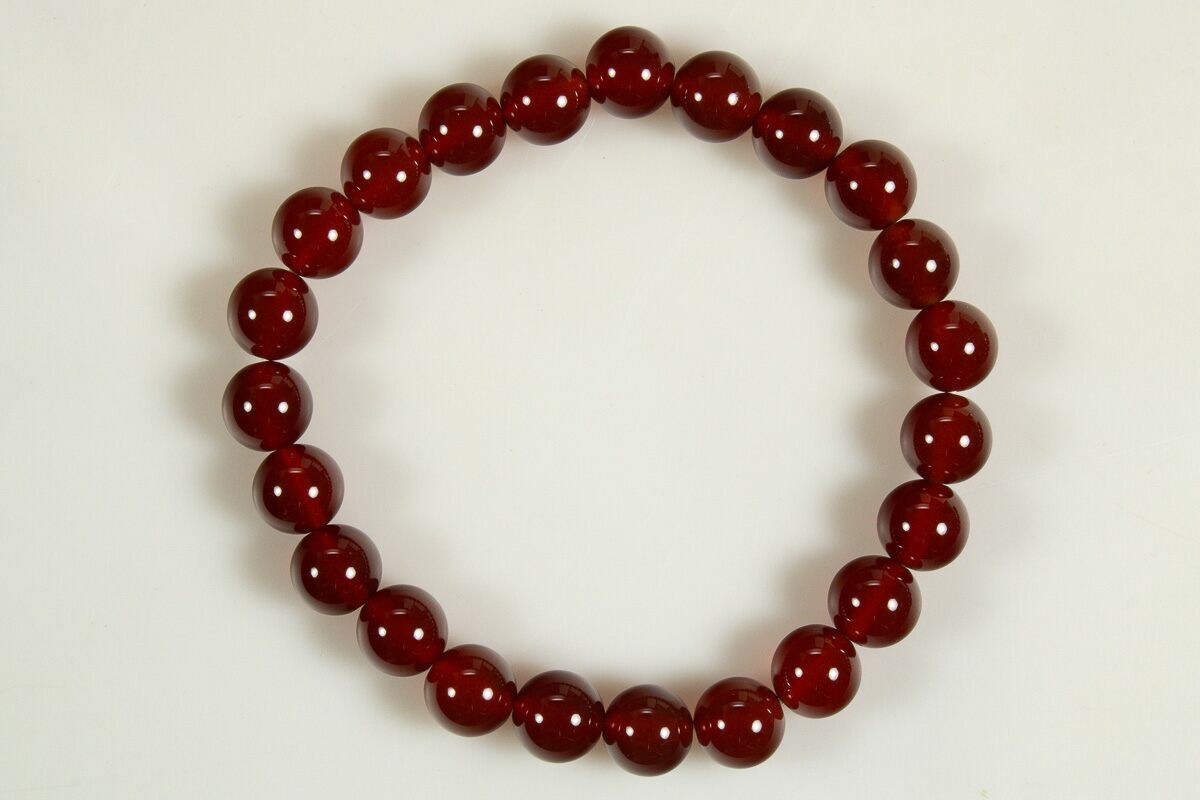 These are carnelian are bracelets with natural, polished, .3" wide beads made from carnelian. The bracelets measure approximately 7.2" in circumference, with an elastic band to comfortably fit around the wrist. The pictures are representative of the specimen(s) you will receive.