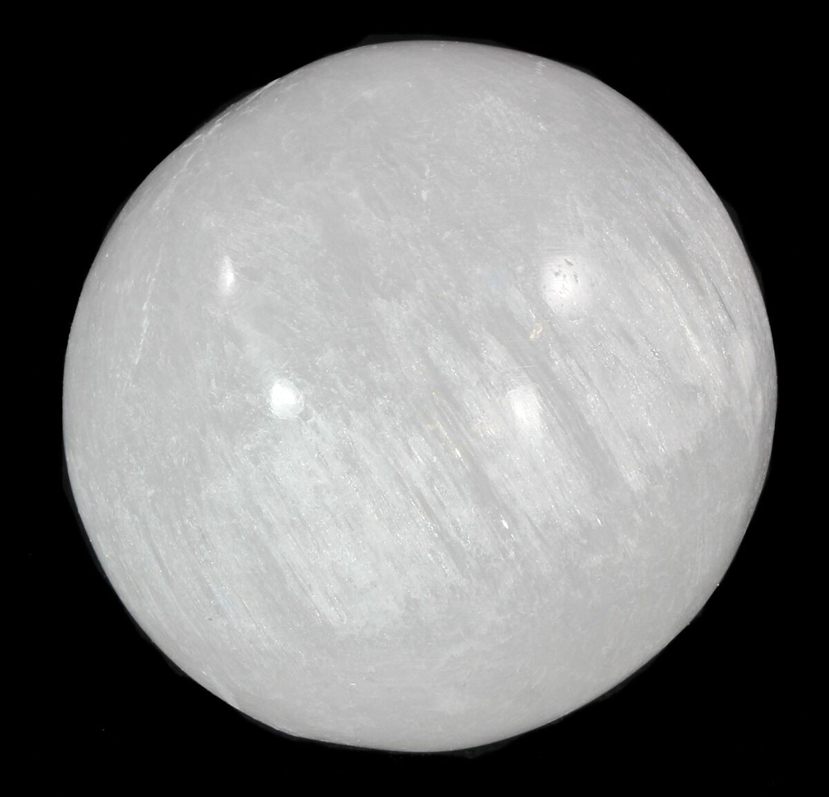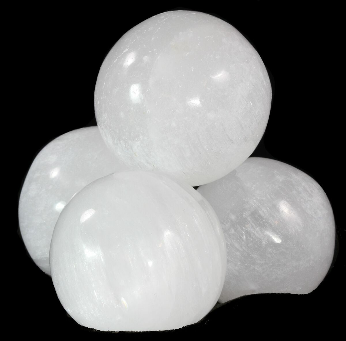 These are 1.5" polished spheres made from "selenite" (satin spar) mined in Morocco.