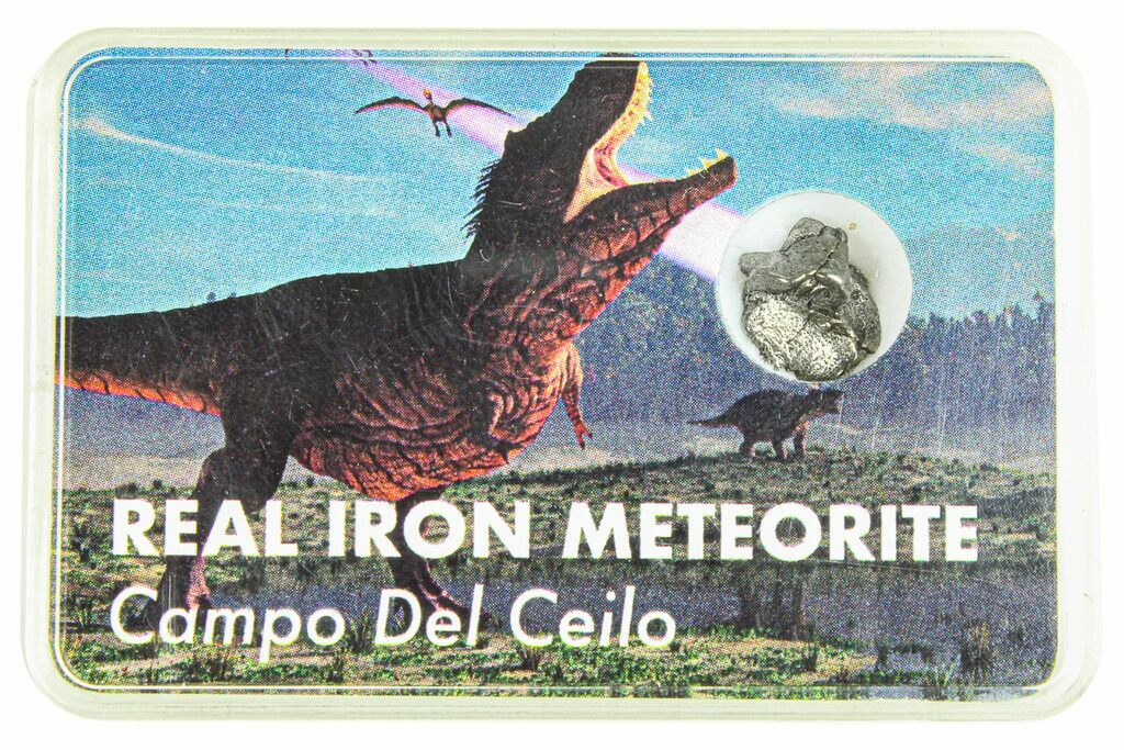 These are authentic pieces of the Campo del Cielo iron meteorite collected from a 18.5 by 3 km area near Campo del Cielo, Argentina. Each meteorite weighs less than 1 gram and is accompanied by the pictured acrylic display case. The photos are representative of the specimen(s) you will receive.