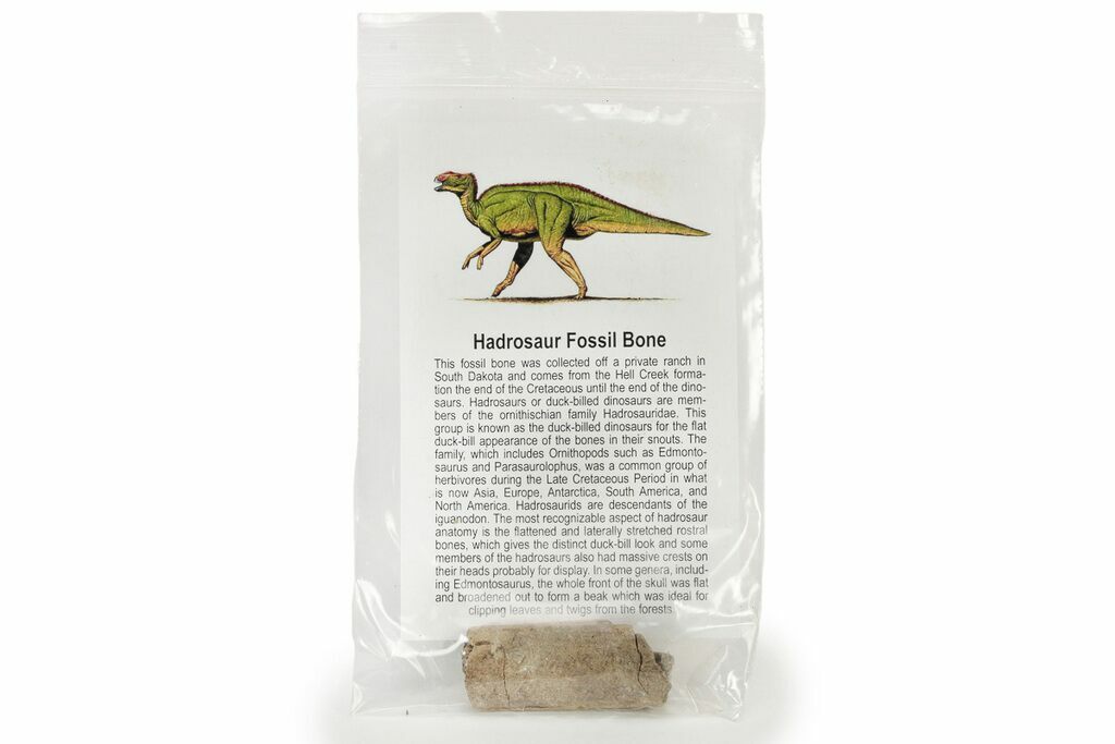 These are sections of fossil bone from hadrosaur (duck-billed) dinosaurs. They come from the Late Cretaceous-aged Hell Creek Formation of South Dakota, and are approximately 66 million years old. The majority of these specimens range from 1" to 3" with a few being up to 4", and the photos are representative of the specimen(s) you will receive.