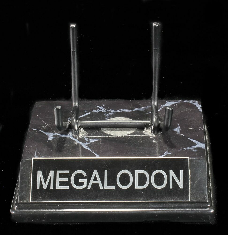 These stands are great for displaying large Megalodon teeth (4 1/2 inches or larger). Smaller teeth tend not to sit very well on the base. They have an attached plaque that lets everyone know what monster shark your tooth came from. These stands are great for anyone wanting to show or display your Megalodon tooth without having to risk handling or damaging it.
